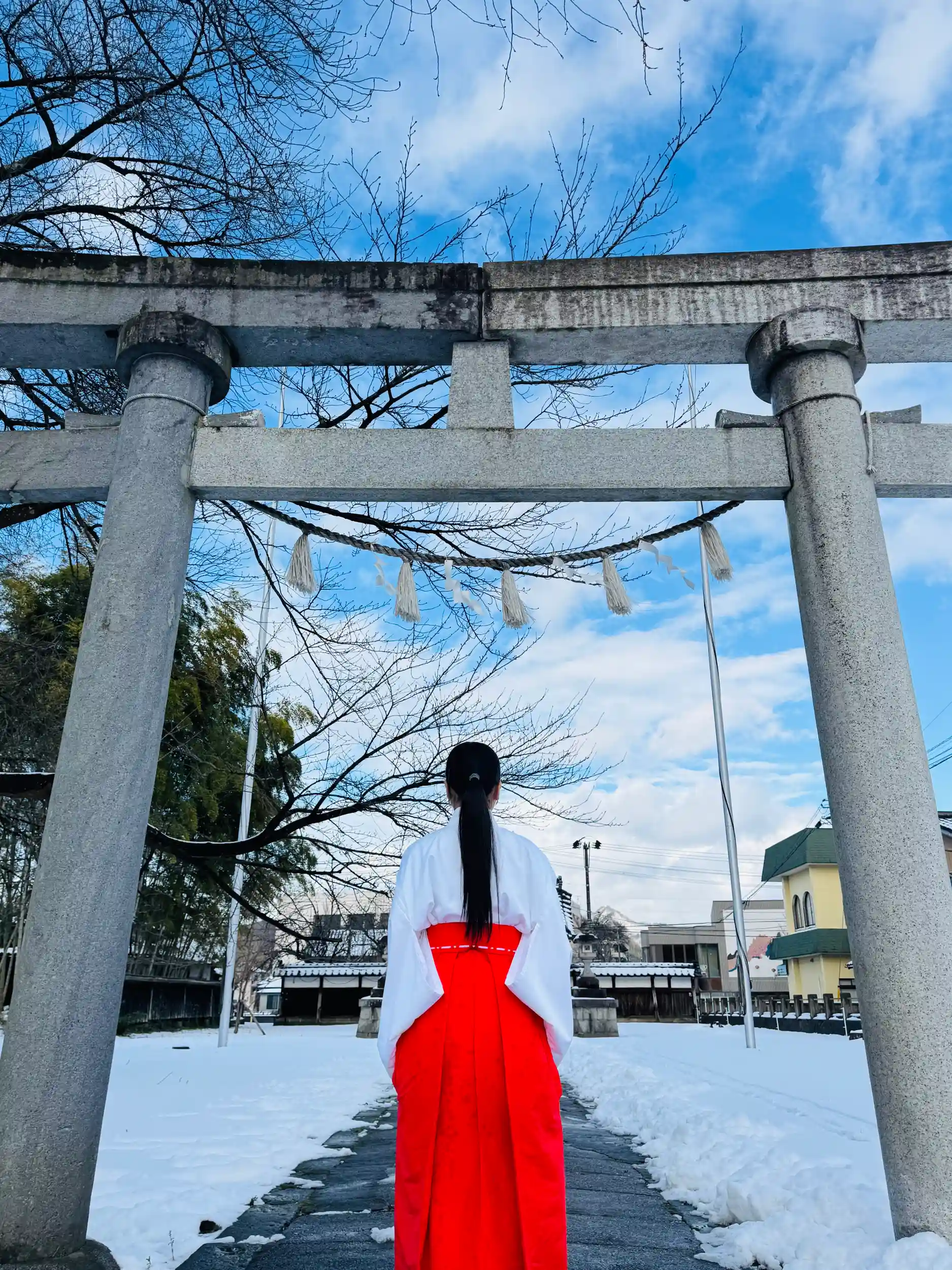 白く染まった境内と、冬ならではの澄んだ空気。
