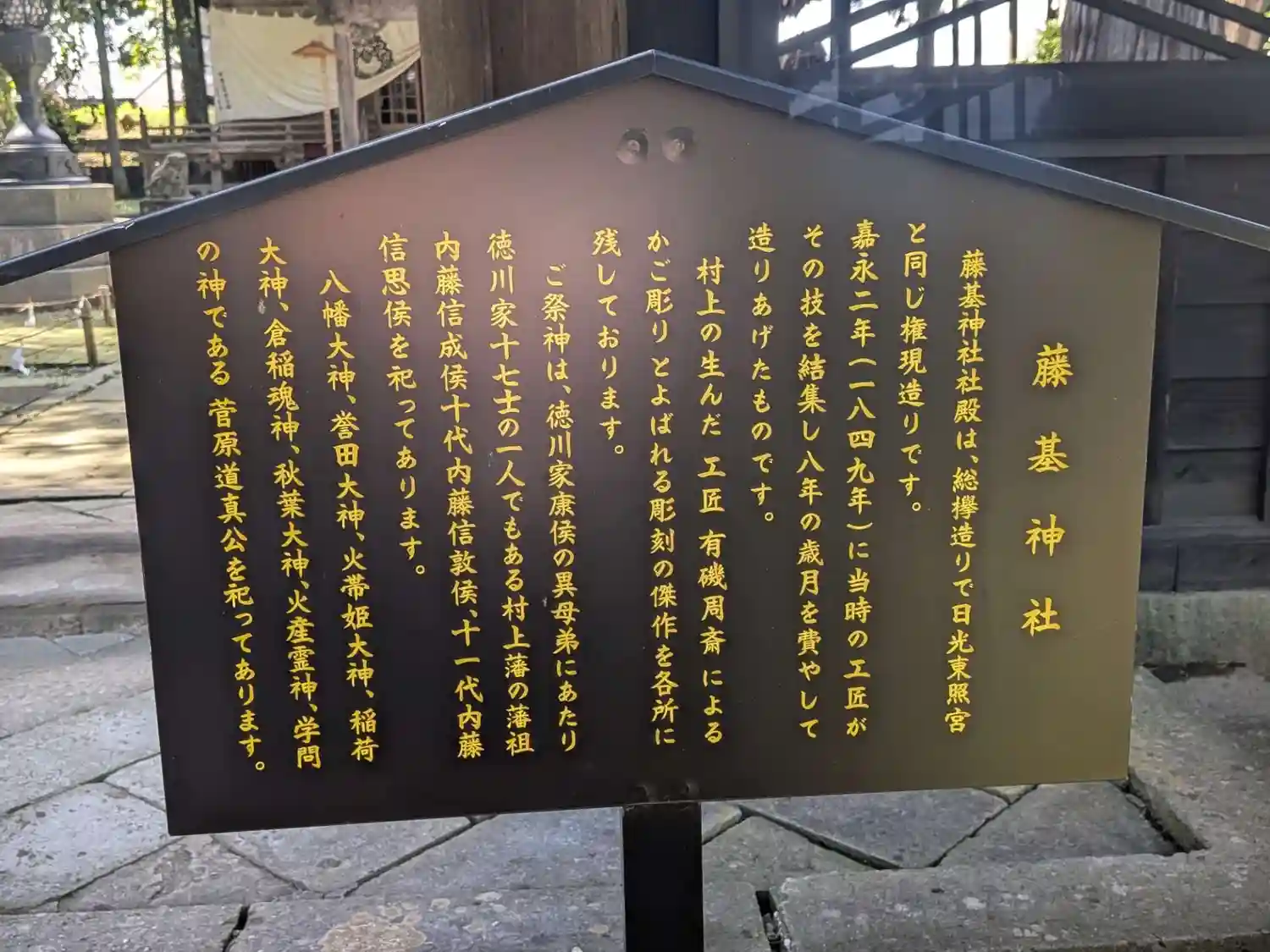 続けざまに起こる家の不幸を家祖信成の御神徳により払い除けようと、江戸の内藤家邸内に先祖信成を祀る霊廟を創建し「藤基神社」と称したのが当社の始まりです。