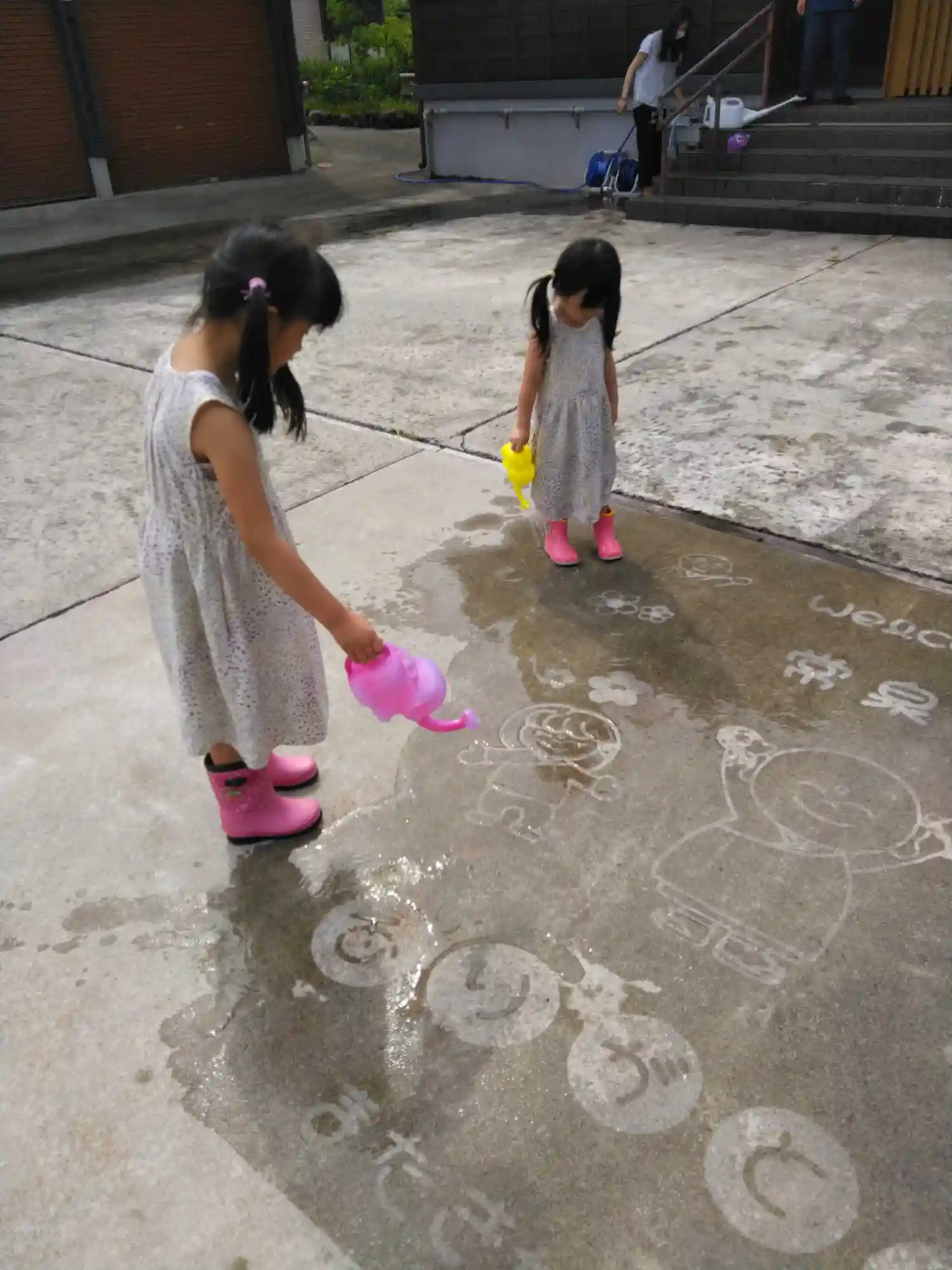 長女ちゃんと次女ちゃんがじょろで水をかけてるとこ😉