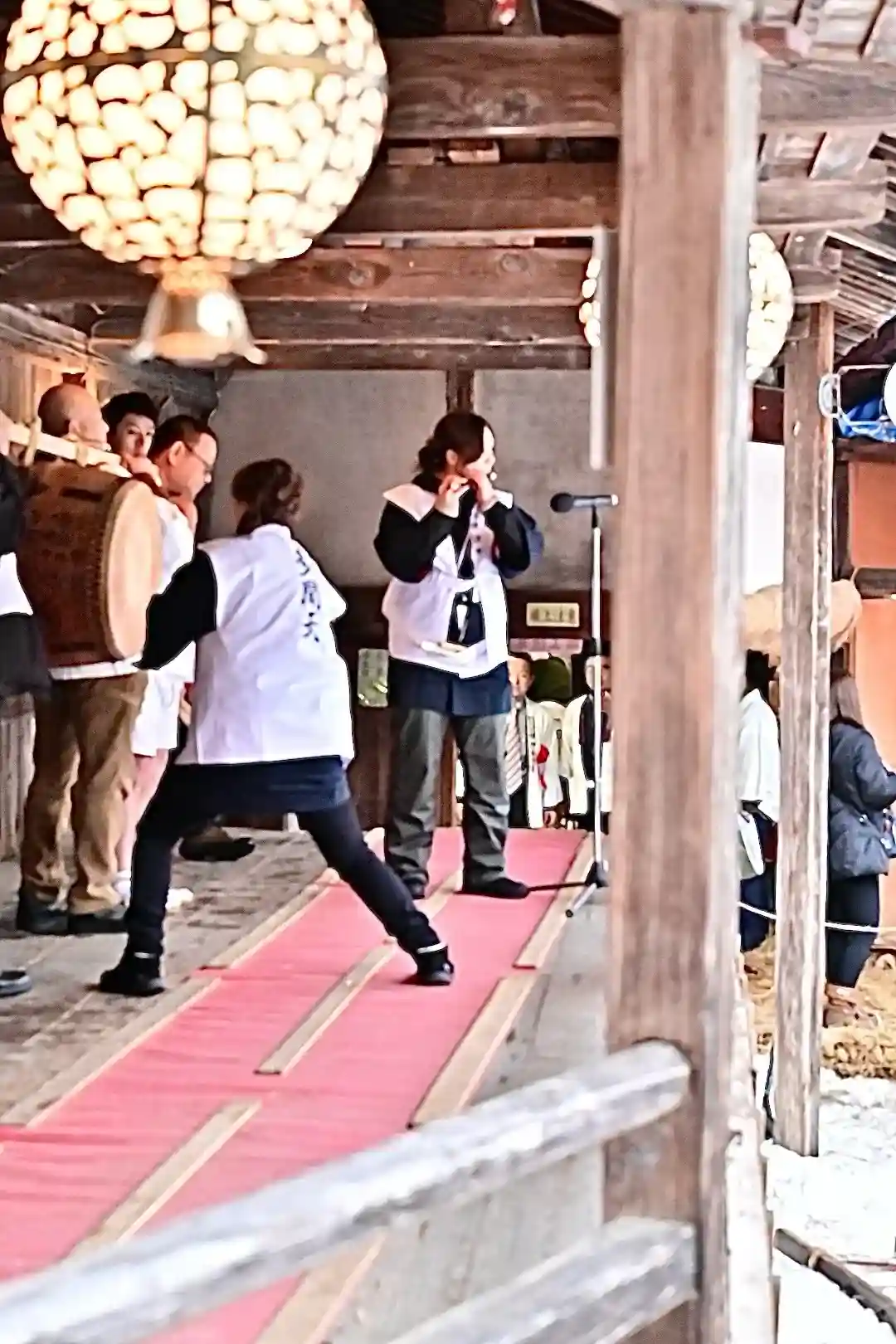 回廊の上から福餅などが撒かれます