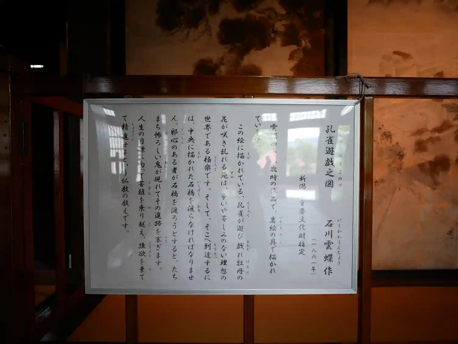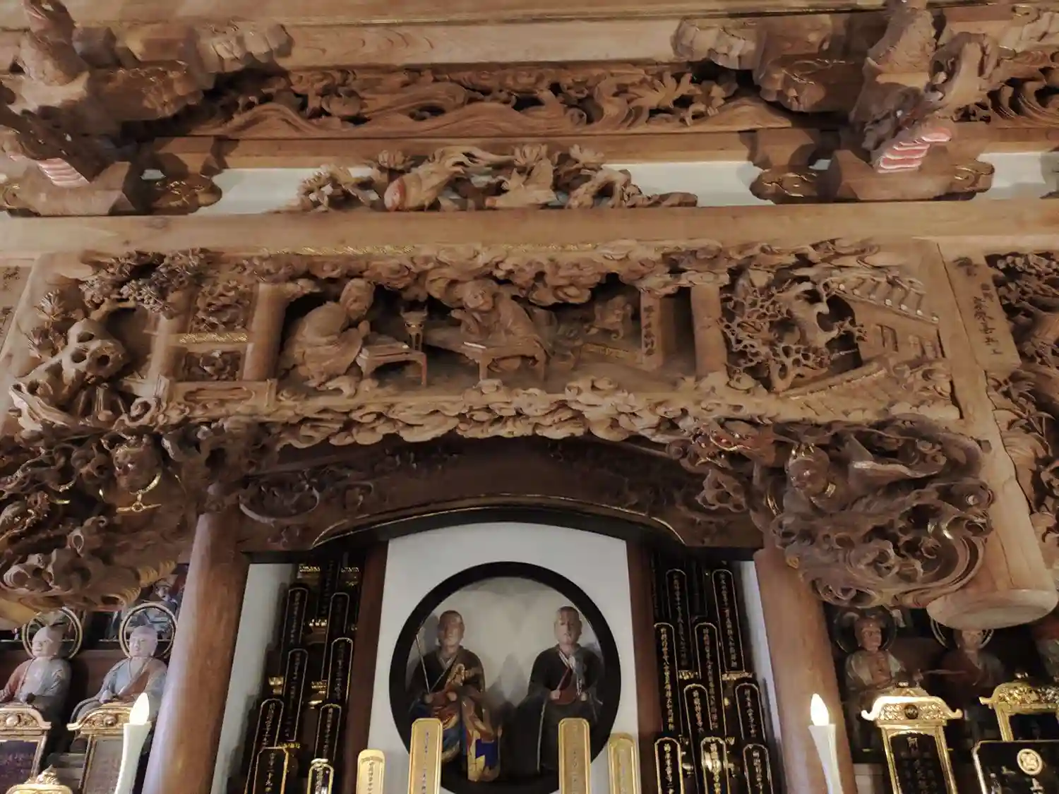 素晴らしい彫り物や水墨画があり美術が間近に感じられて感動しました。