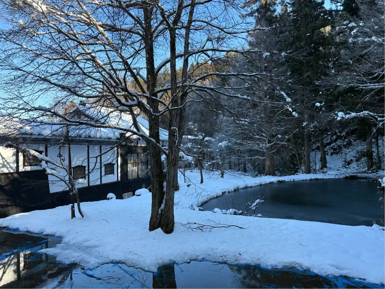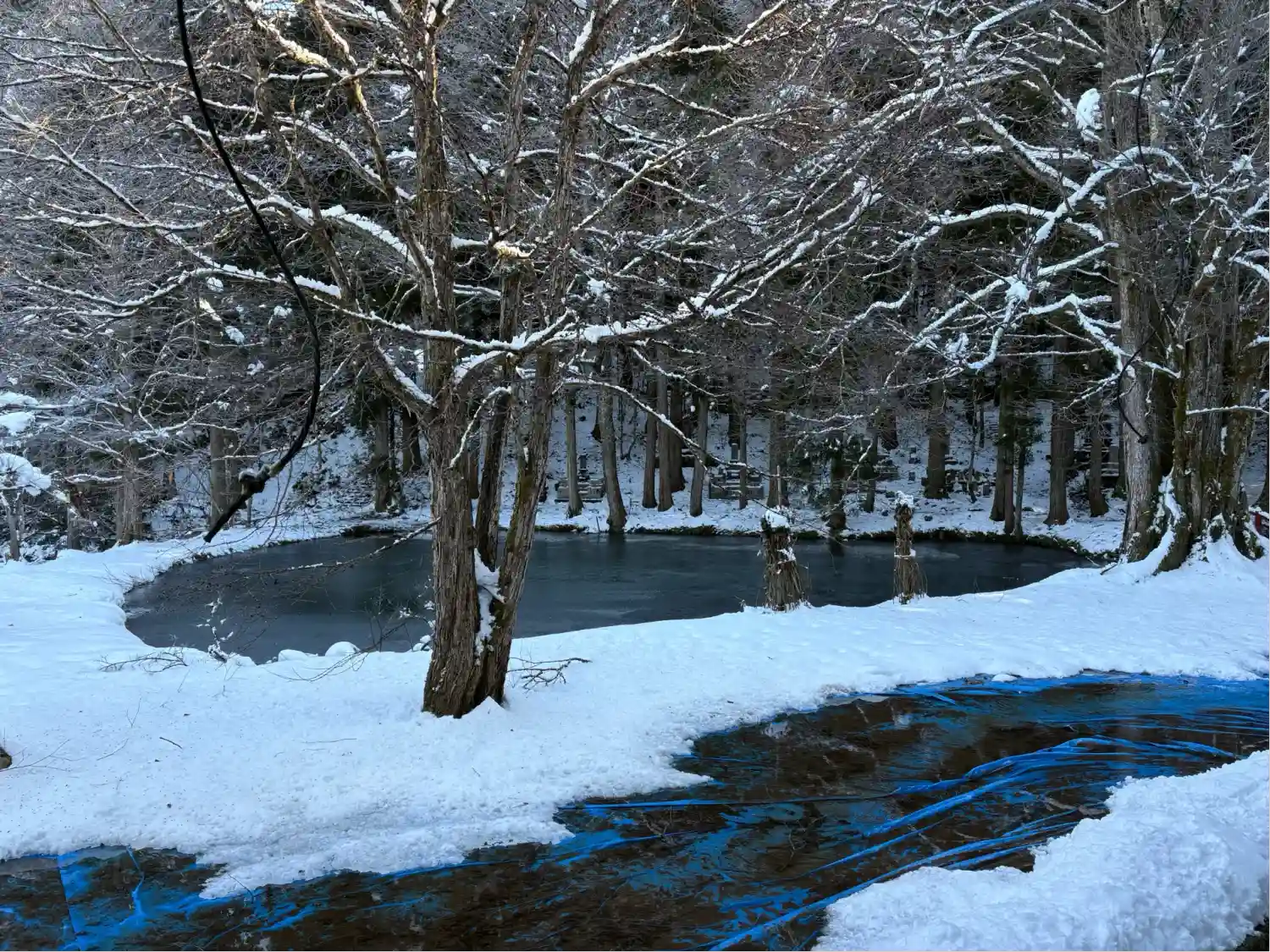 外の池が凍ってるうぅ🥶🥶