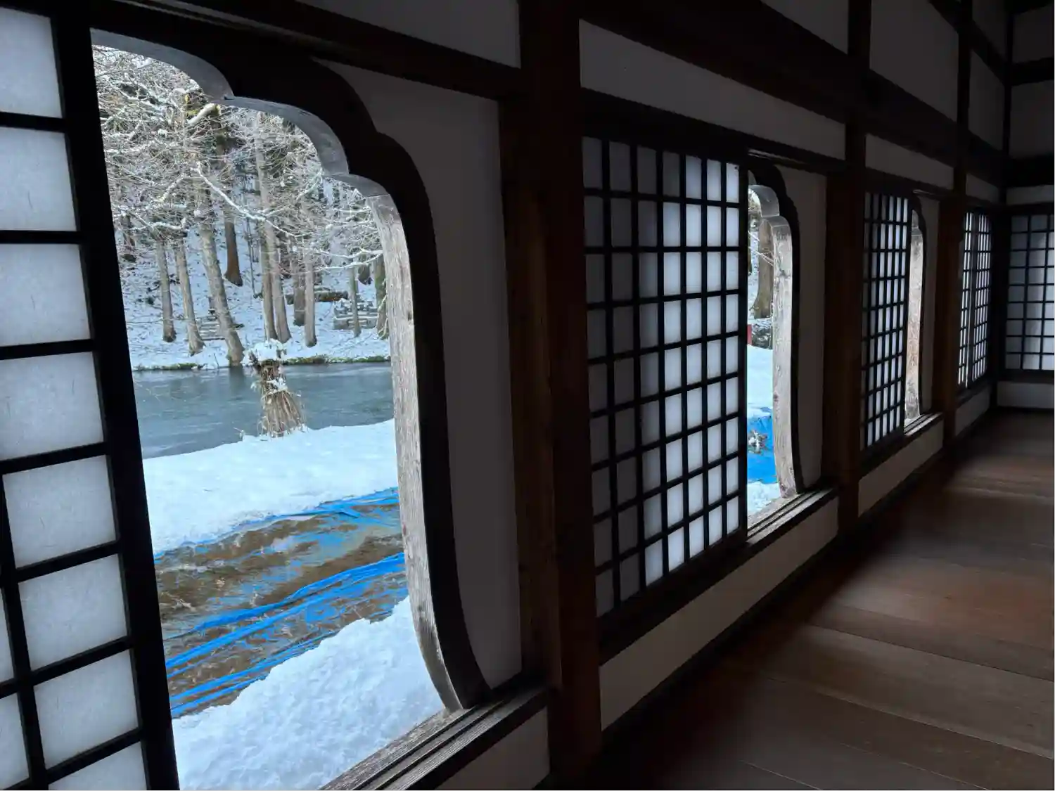 境内は雪の中