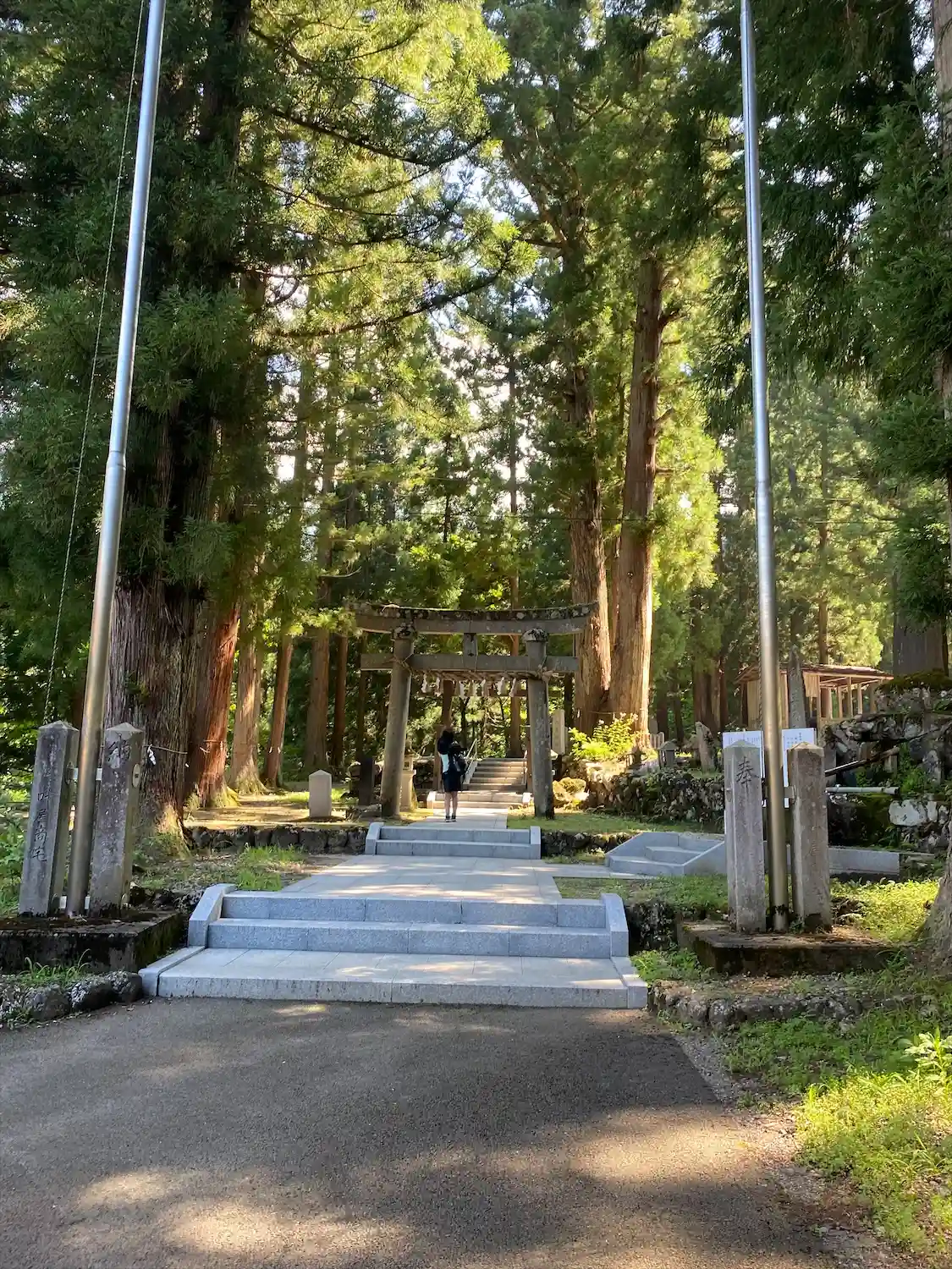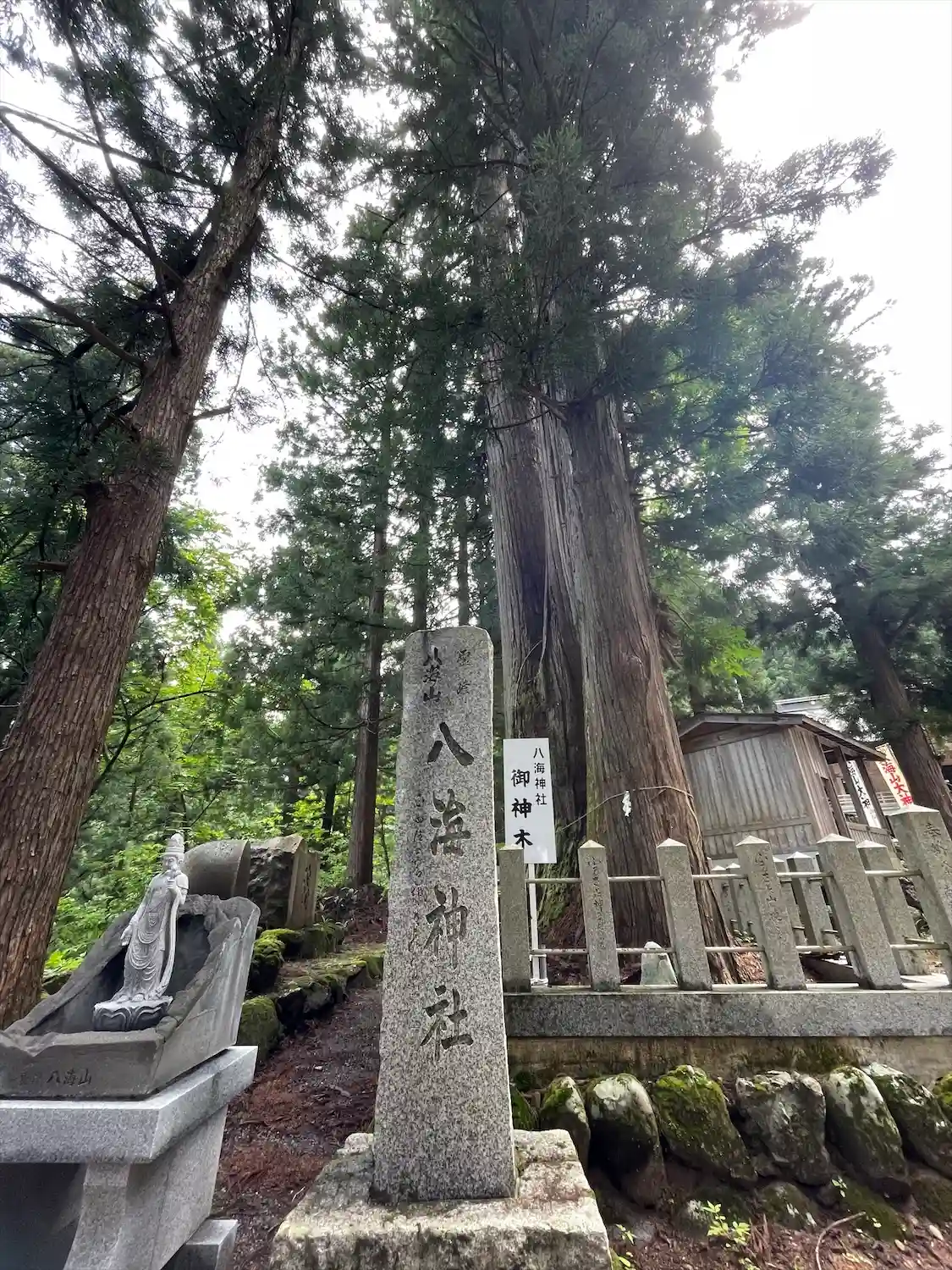 鳥居から〜避難所裏に 八海山遥拝所 八海山大神さまの後ろは、登山道 登山者以外行かないように! 道のりは厳しいので(経験有)💦