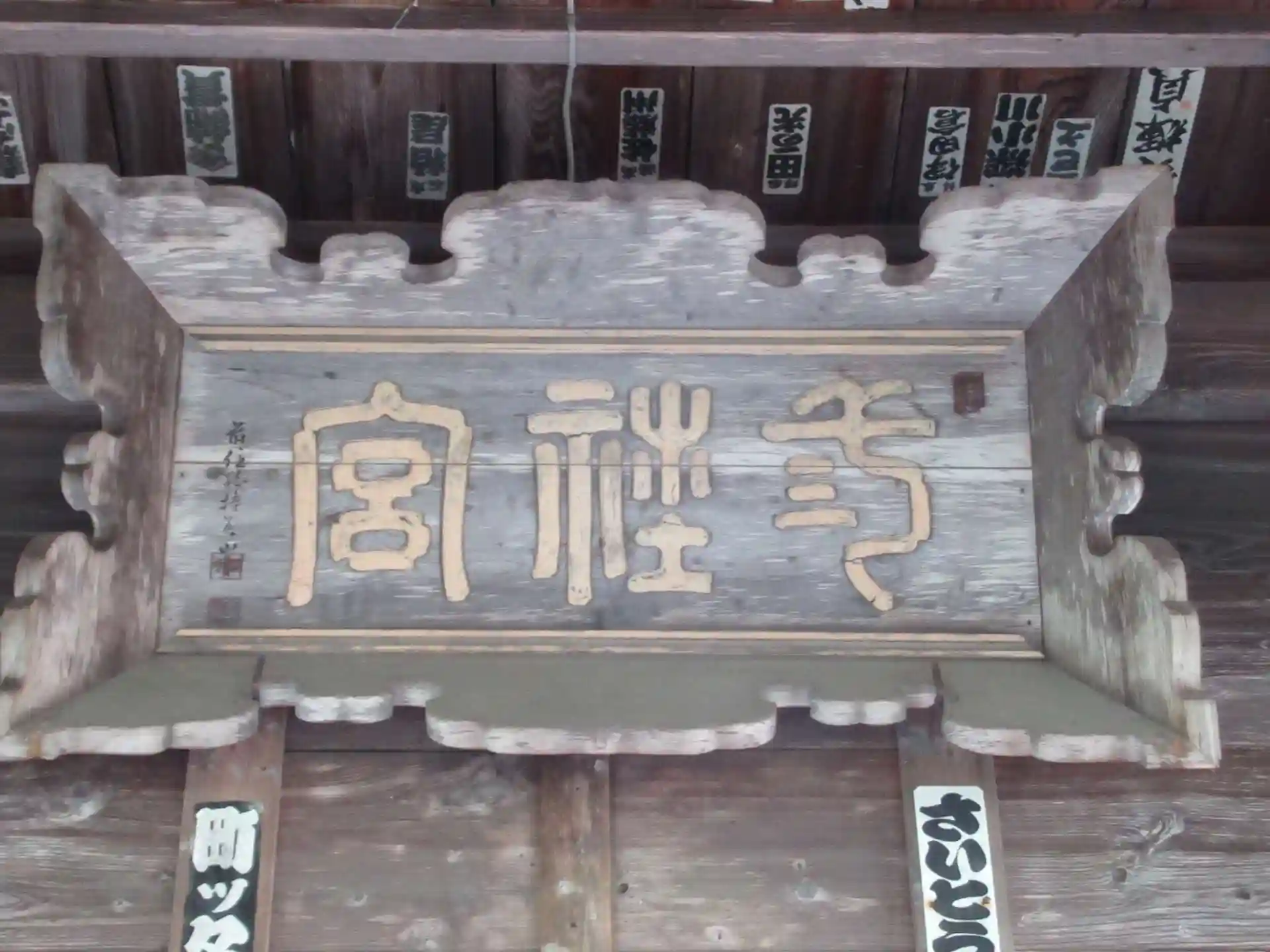 扉を開けて拝殿の中に入って参拝することができました。本殿の扉はさすがに閉じられていましたが、春日、住吉、八幡の三神の椿の木で刻まれた木像とのことです。