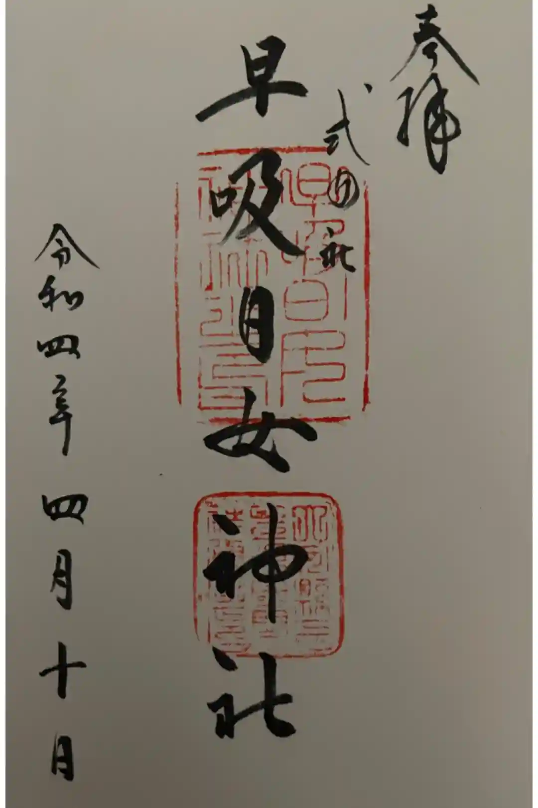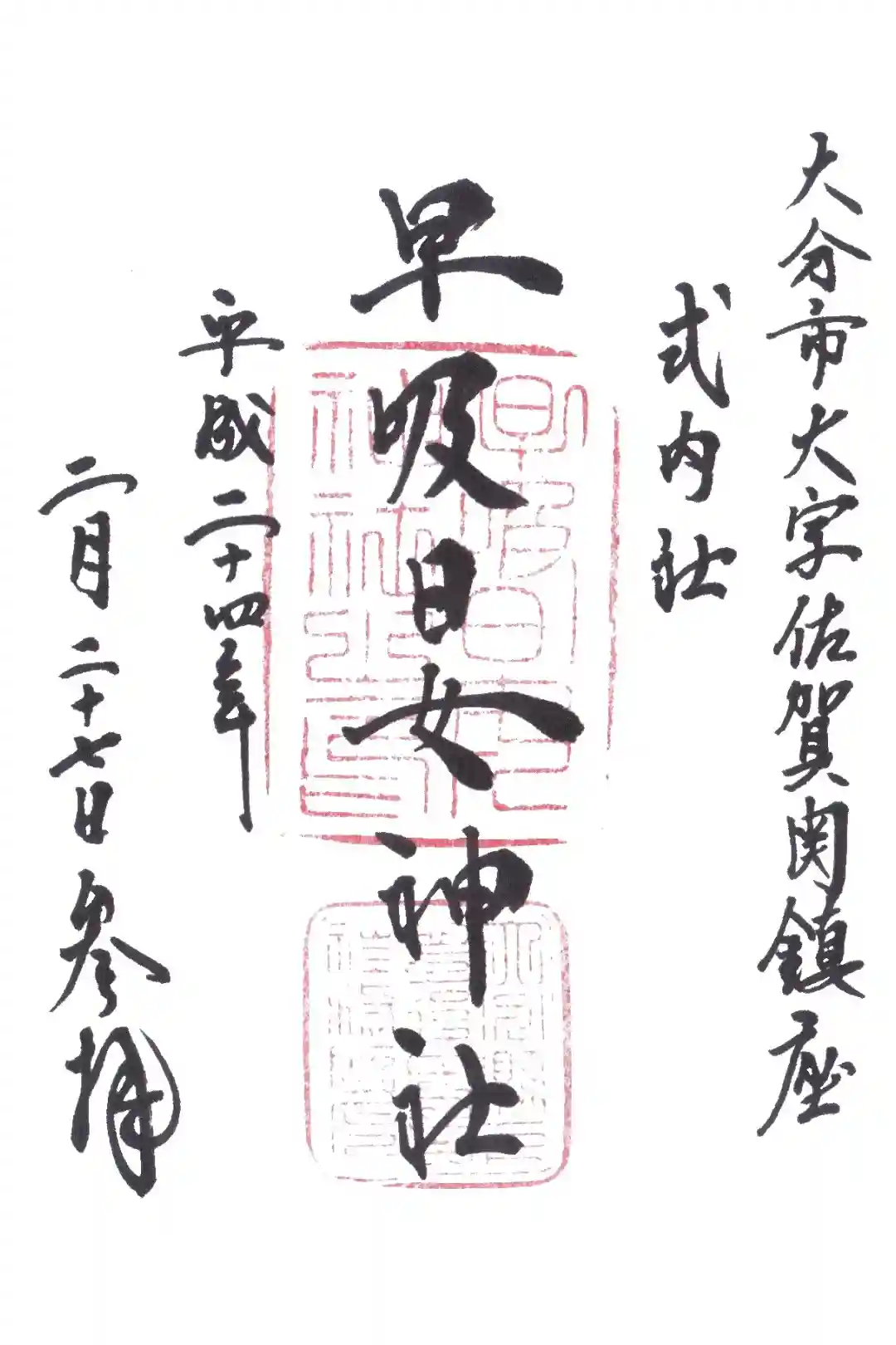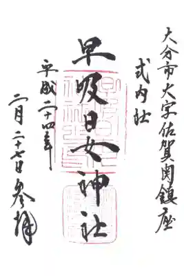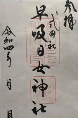 早吸日女神社の御朱印・御朱印帳