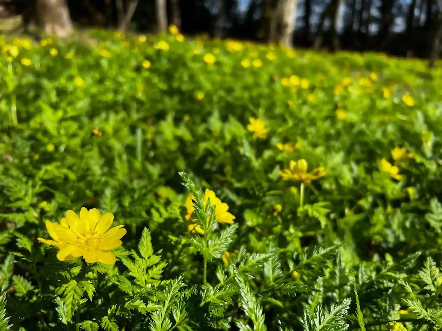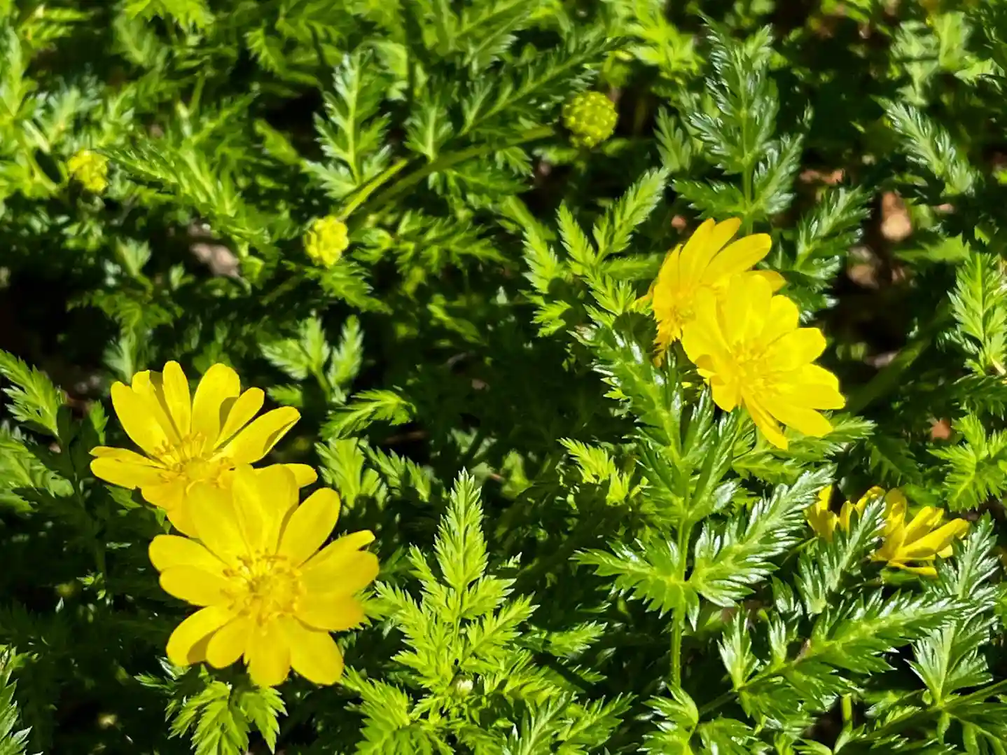 境内を出て右手へ進むとたくさんの福寿草が・・・