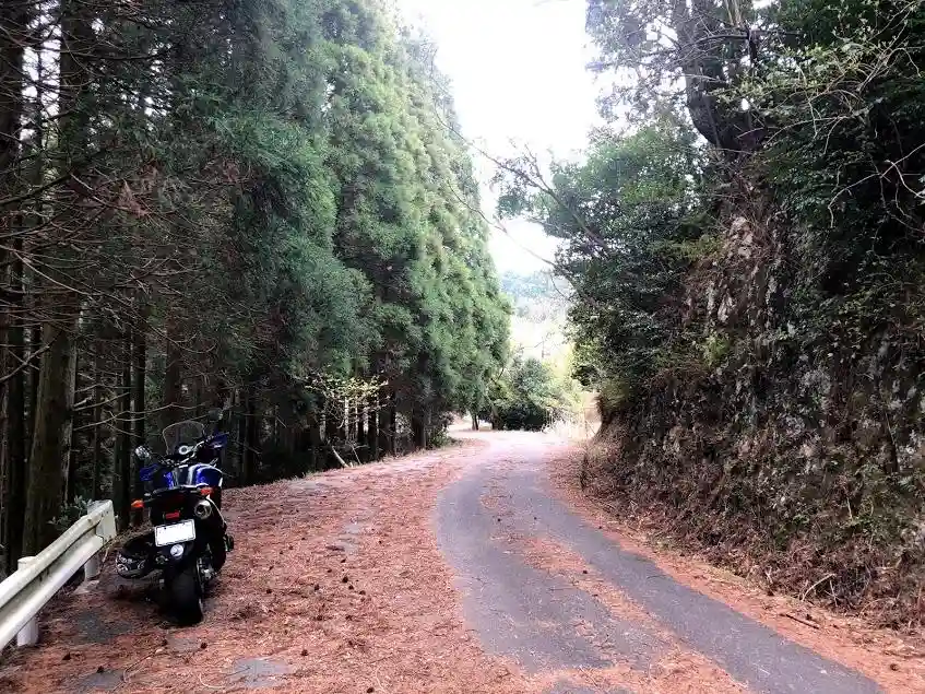 手前のやや広くなった場所へバイクを停めました。