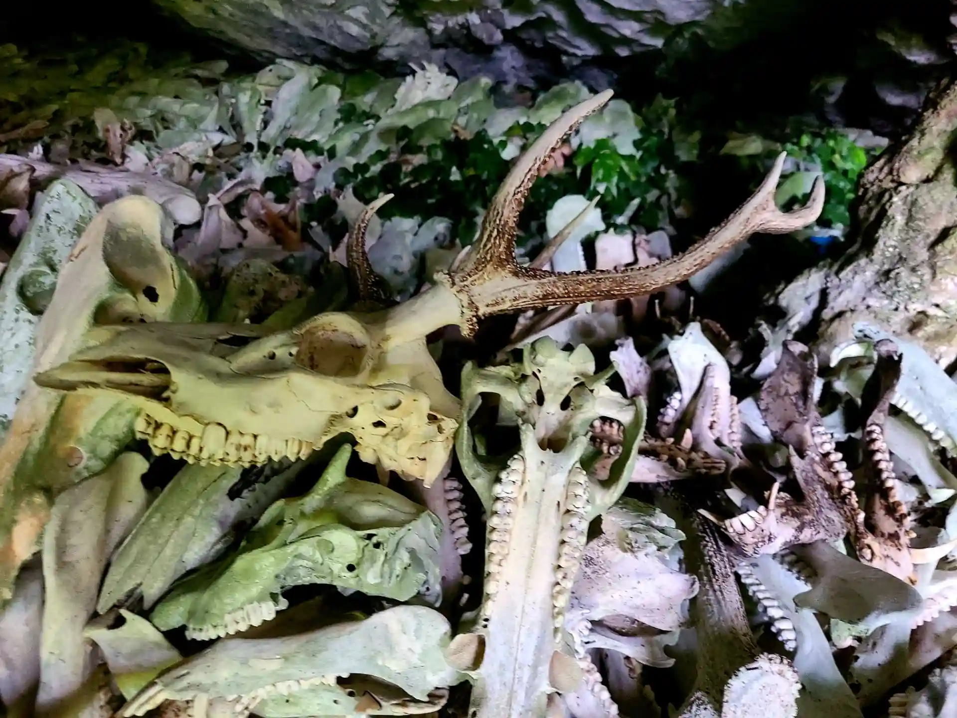 その奥祠があり、そこまでの間に無数の鹿や猪の頭蓋骨が積まれた状態。