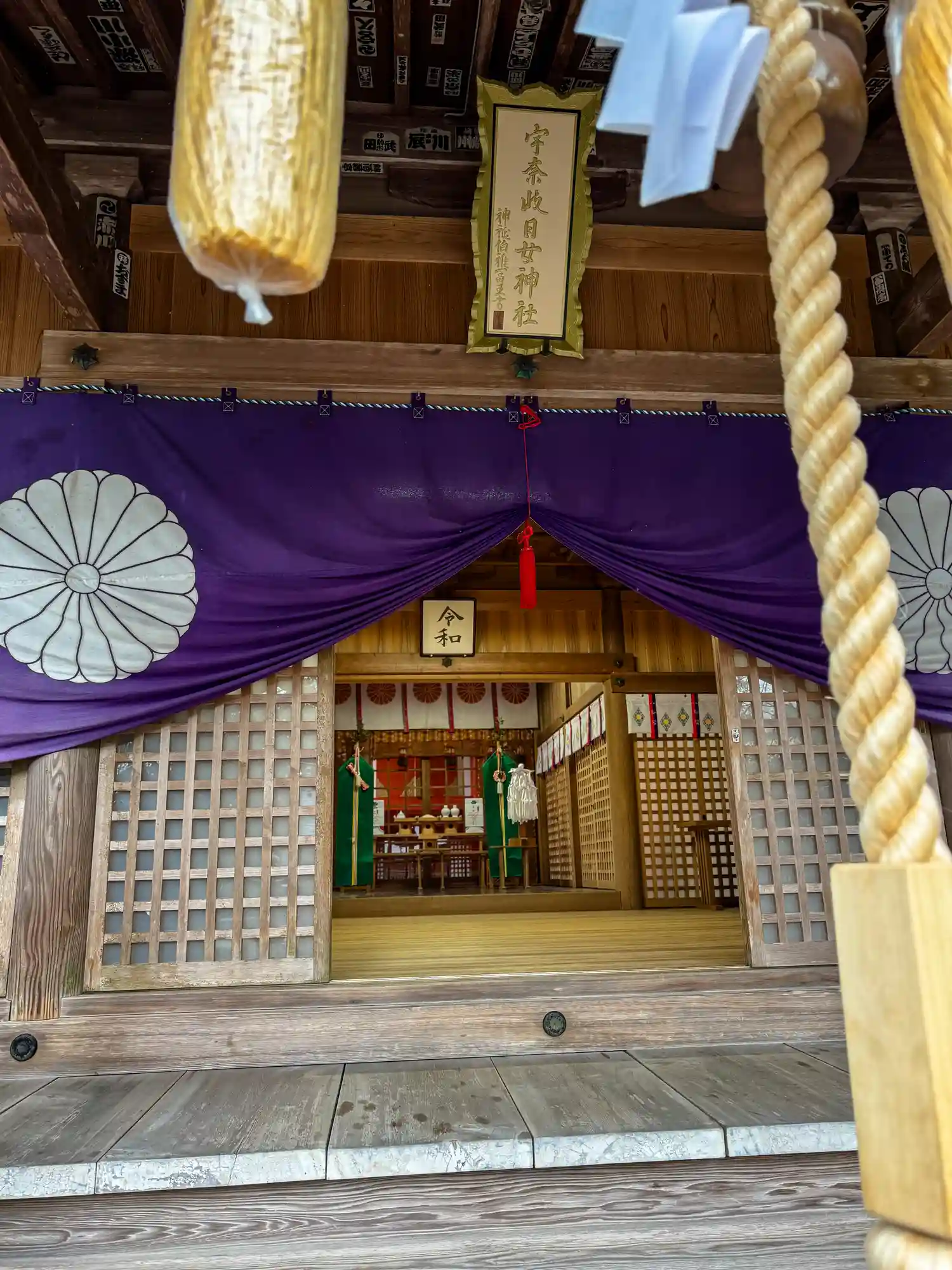 扁額にはかつての神祇官の長である神祇伯、白川雅富王の謹書が入っています。