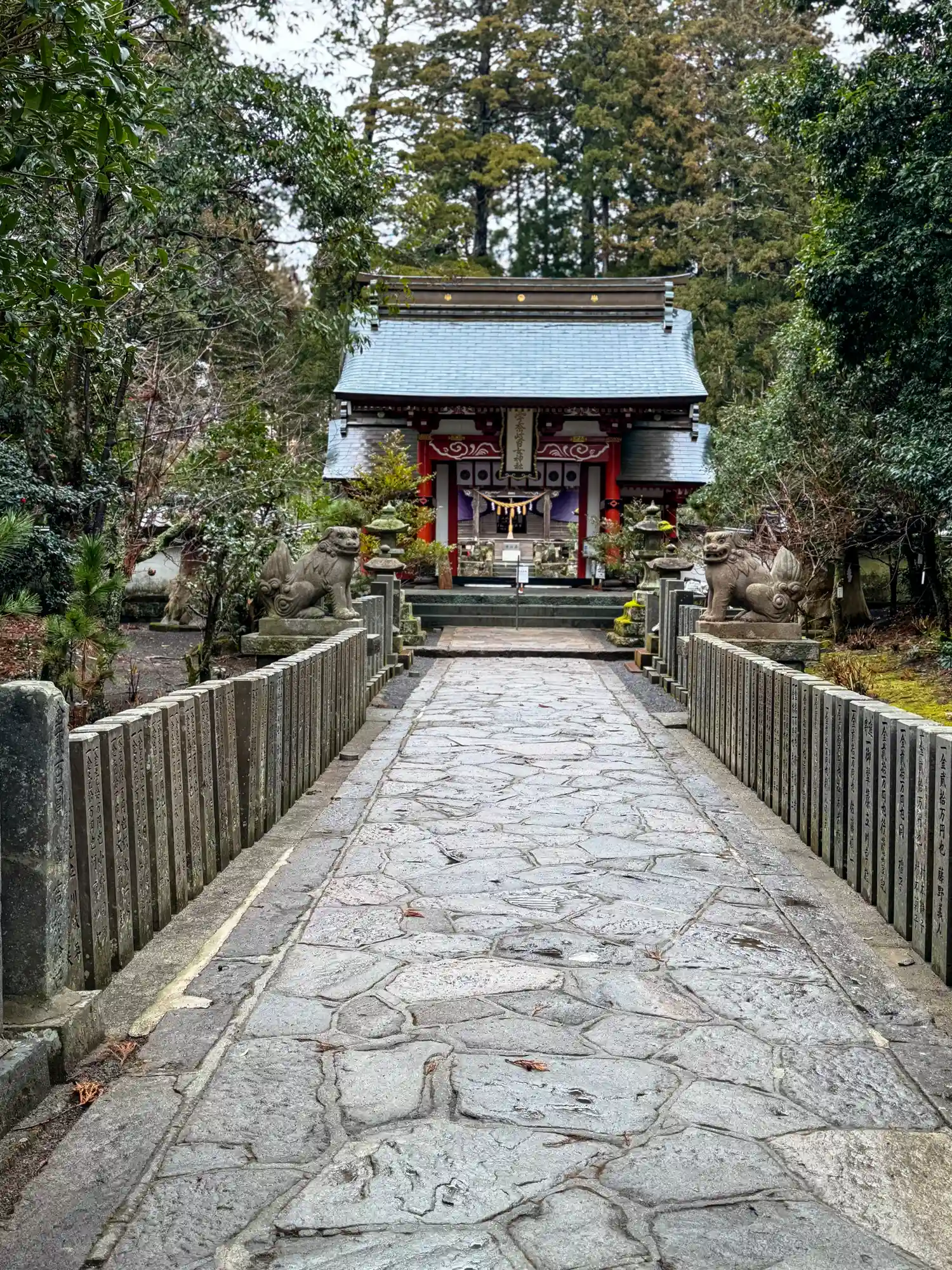 京都付近によくある朱色の建物とはまた違った、より濃い赤色と紋様をあしらっておりとてもきれいです。