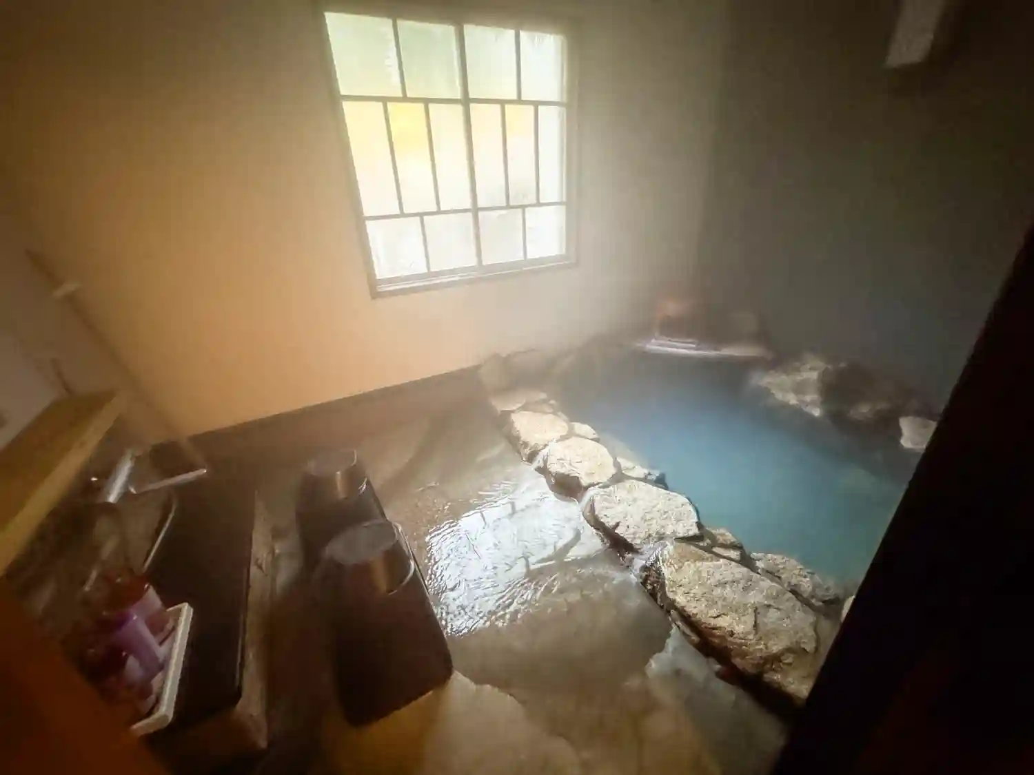 ミルキーブルーの温泉で、温泉のお湯の音がパチパチと鳴っていて良いお湯でした♪