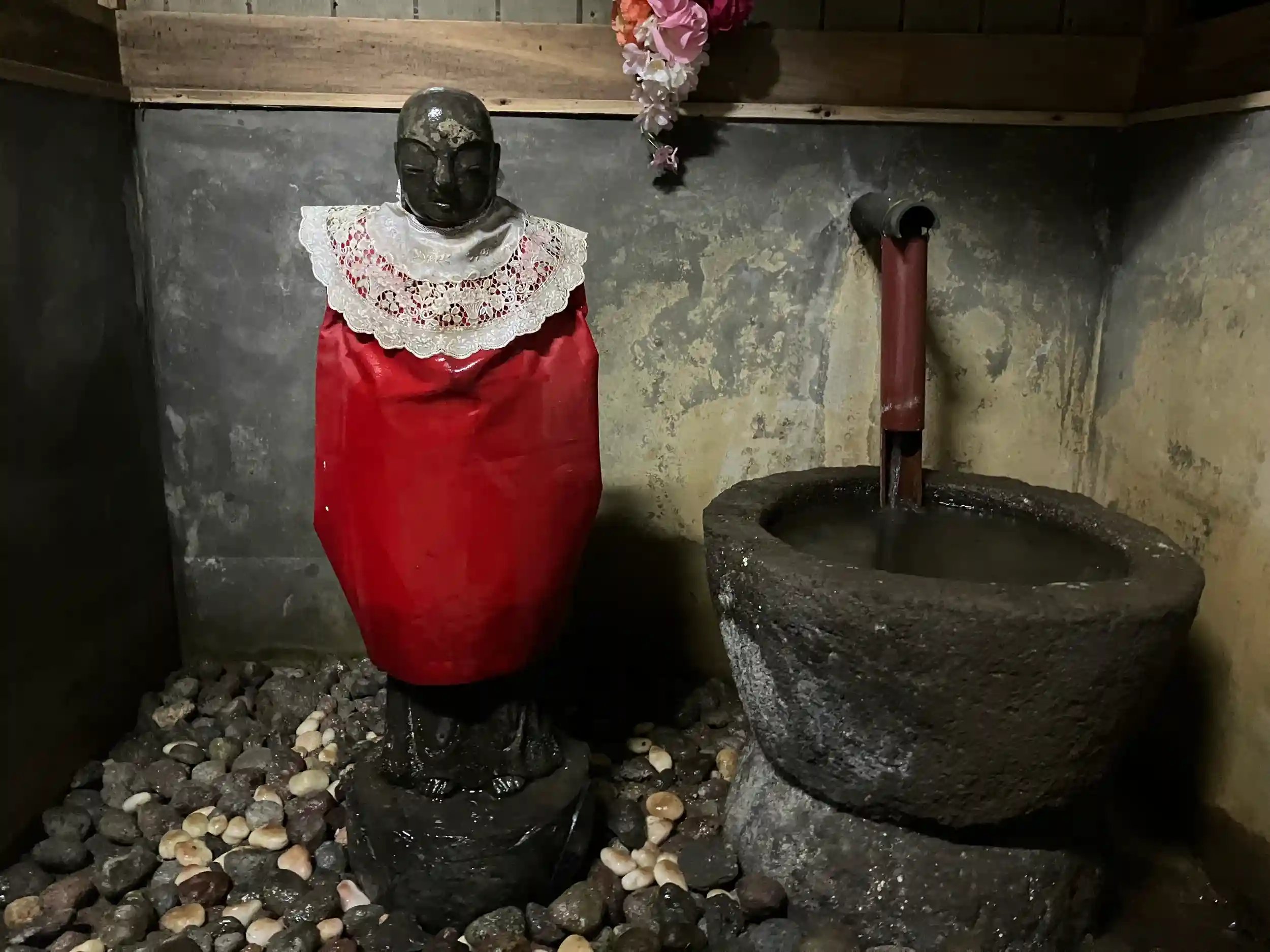 頭から水を掛けると願いが叶うと伝えられる。
