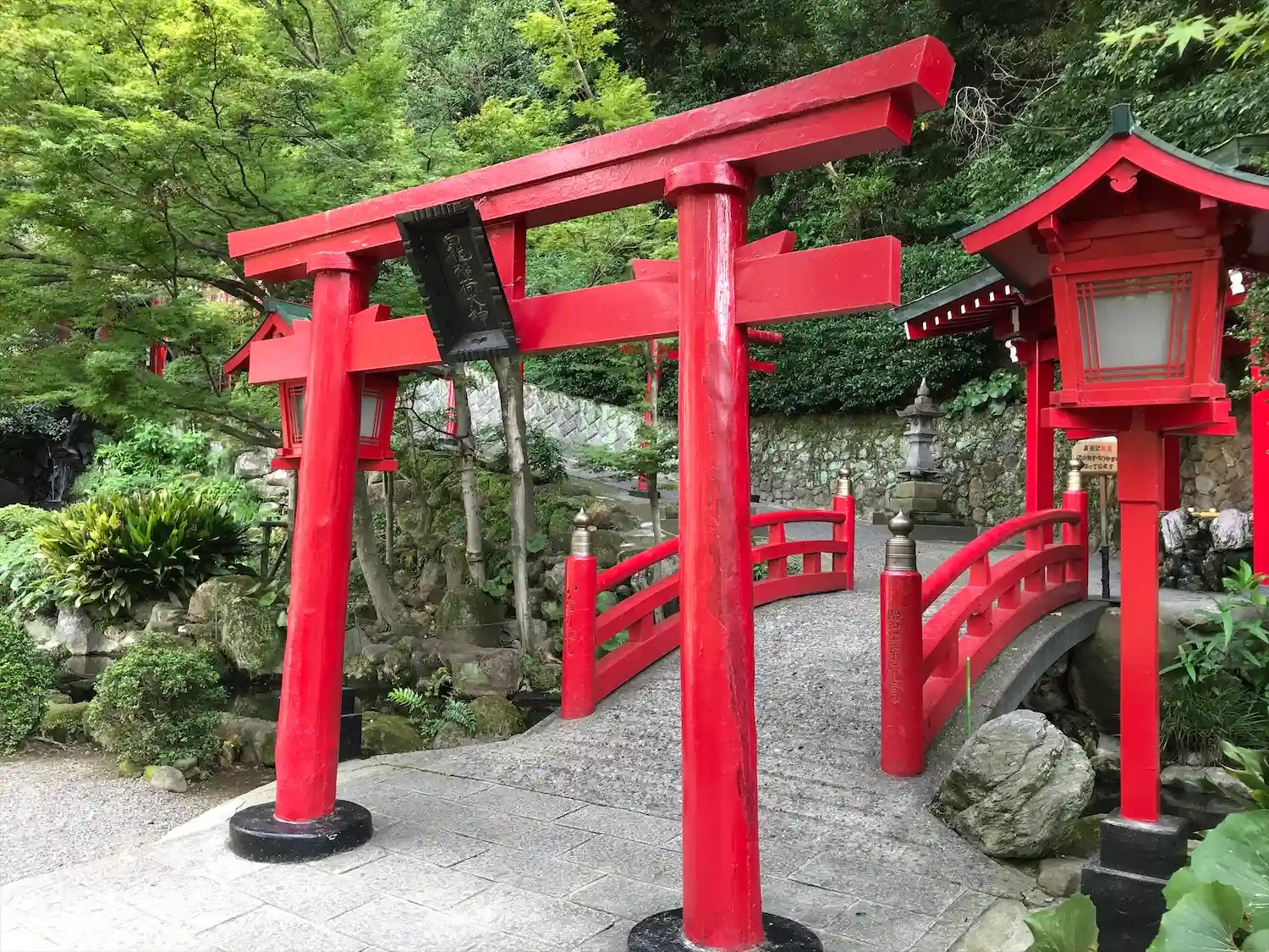 こじんまりとしていますが綺麗な垂れ幕と提灯があり、新鮮な榊が供えられていたとても大事にされているのが分かります。海地獄の職員さんがお世話されているのでしょうか。