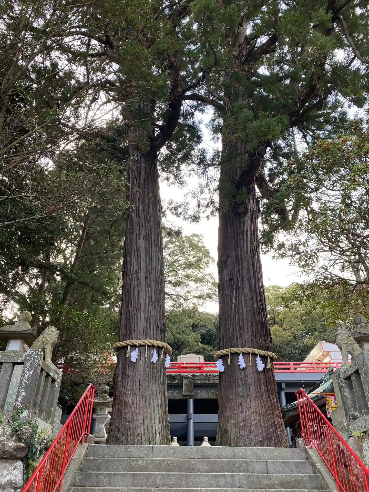 境内入ると直ぐに立派な御神木の楠が2本並んで立っています。木の周囲5メートルほどはありそうです。