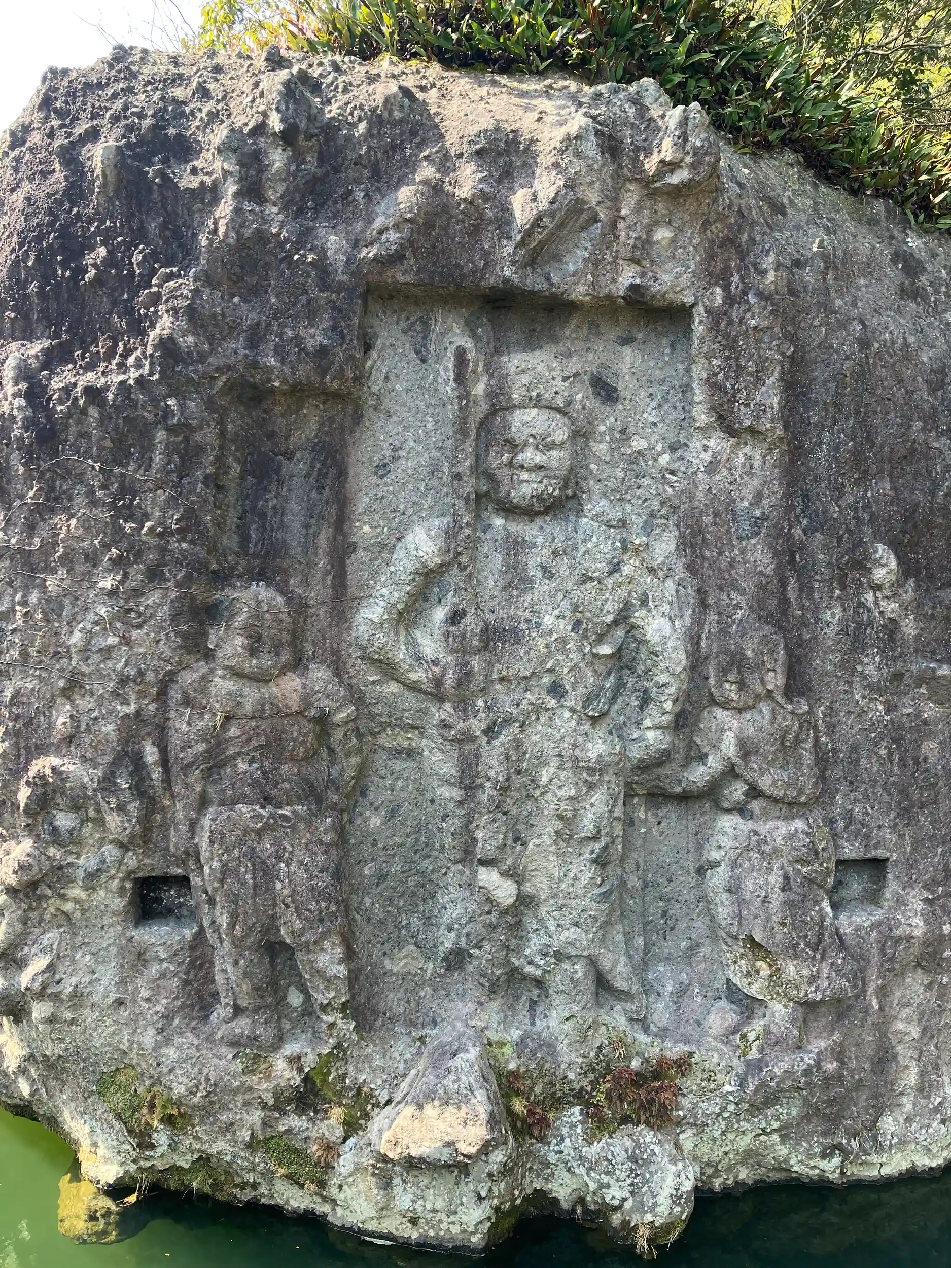 川中不動は天念寺の前を流れる長岩屋川の中にある磨崖仏。