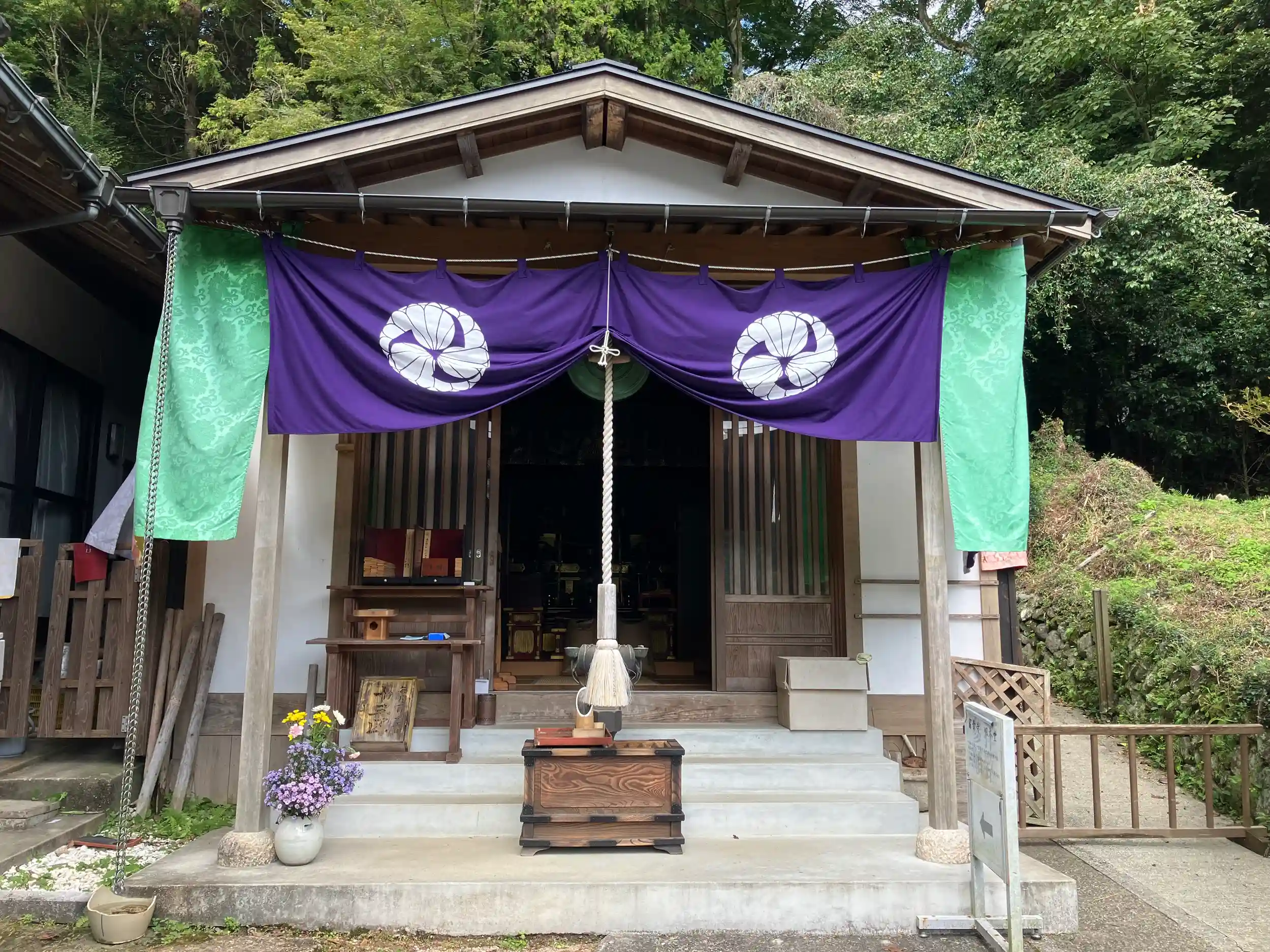 本堂は解体修理中で、現在仮本堂が設けられている。
