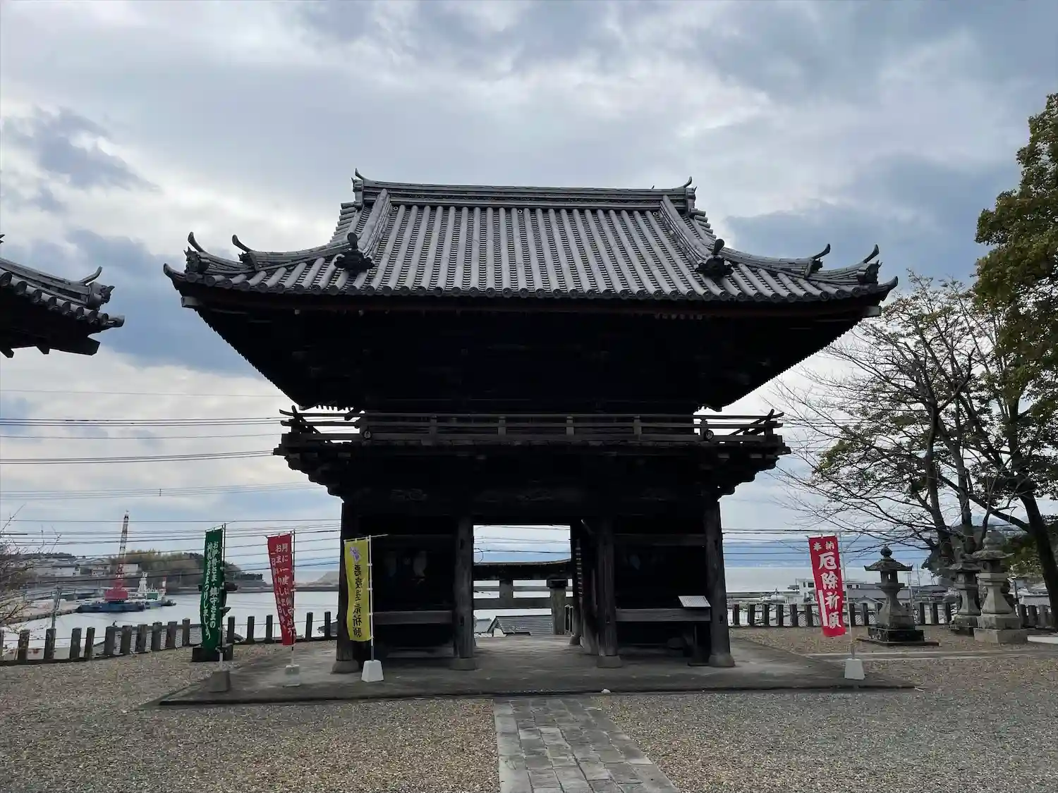 境内から見る楼門越しの海