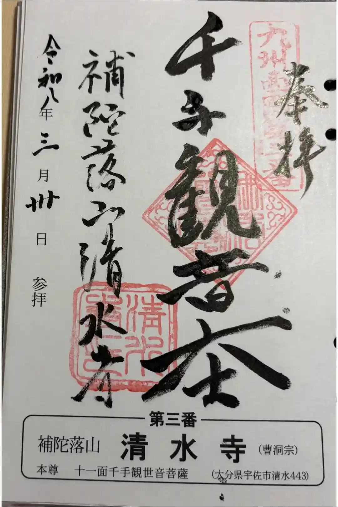 九州西国霊場の札所、宇佐市の清水寺さんです。
