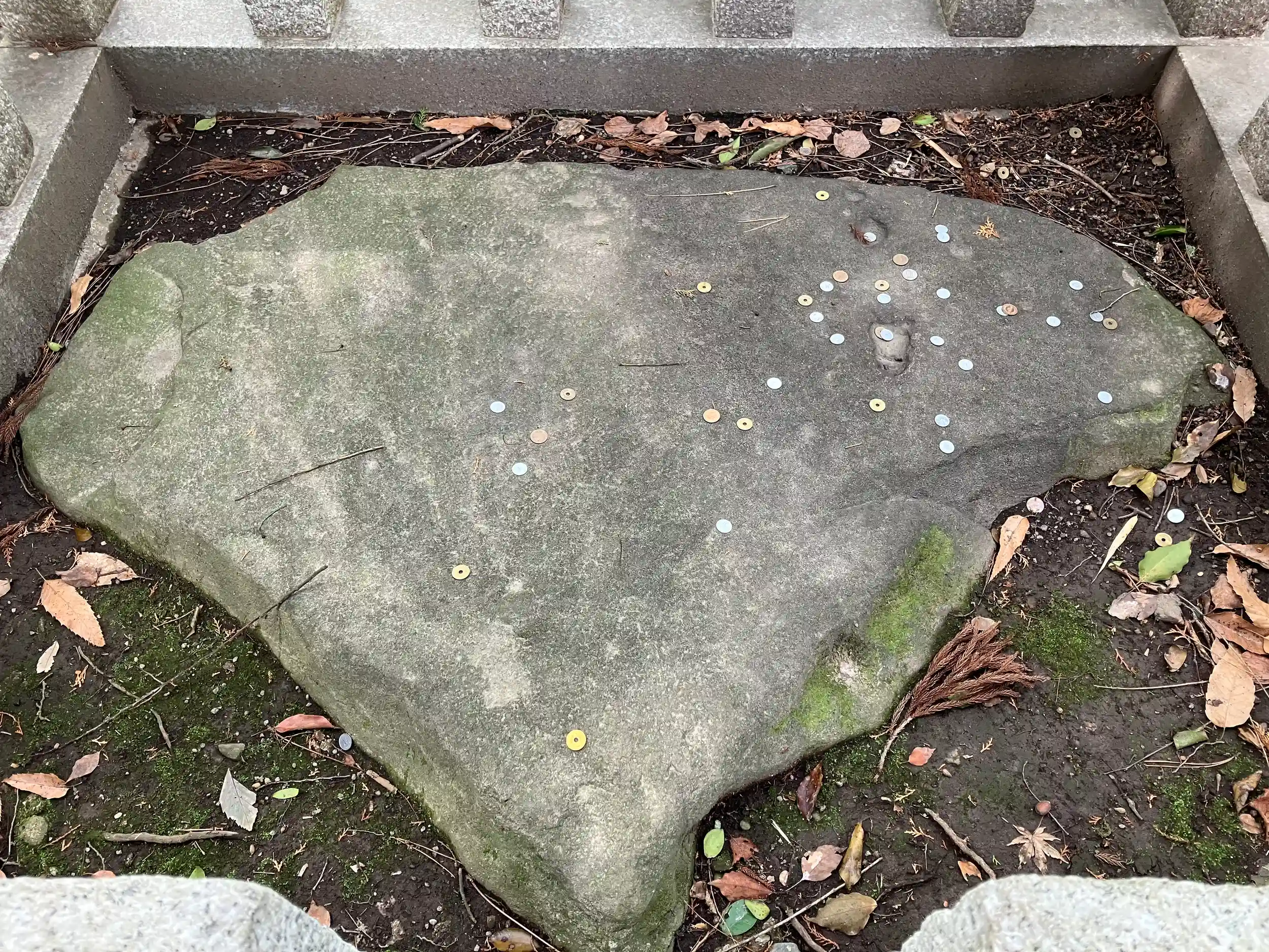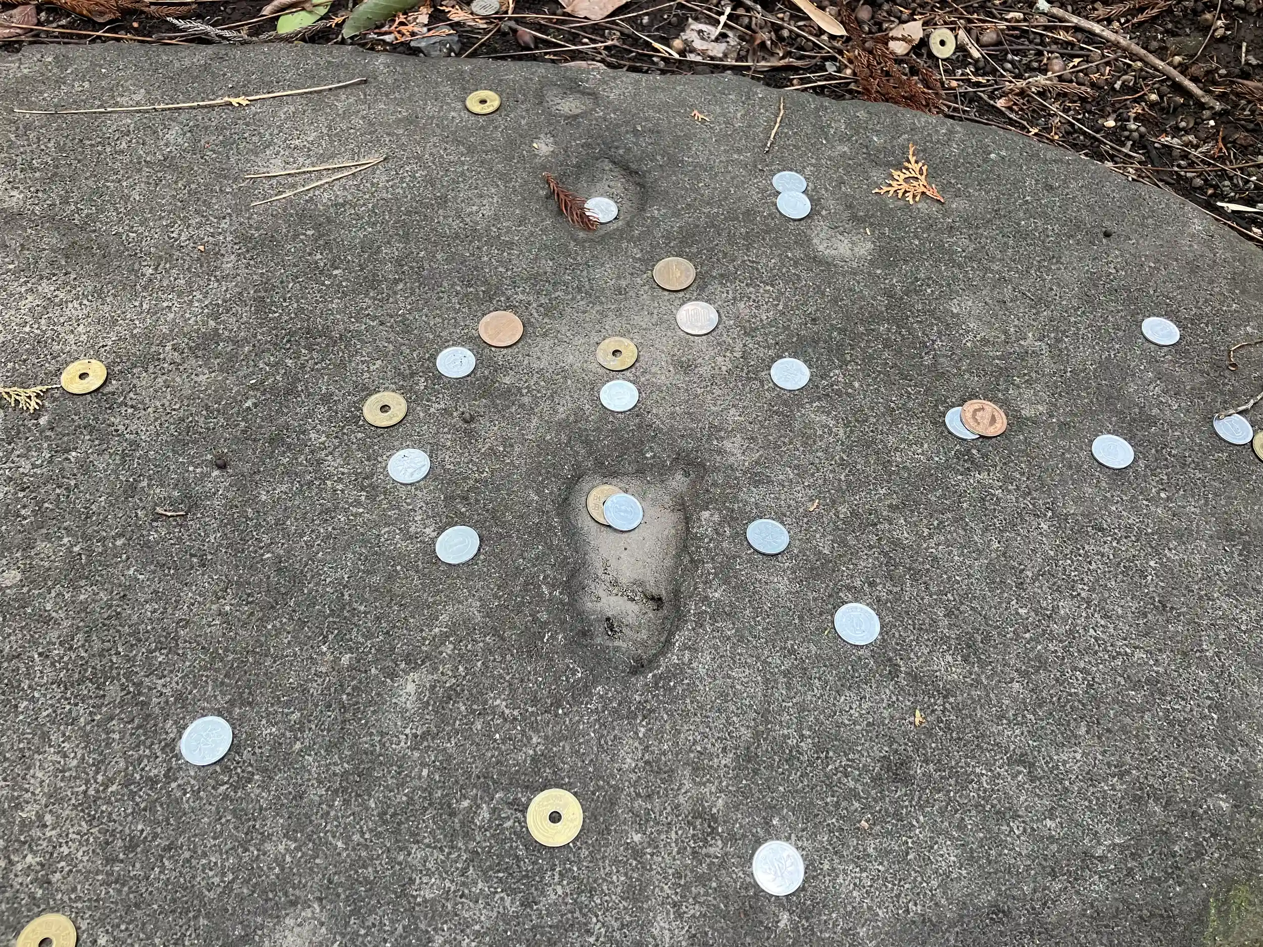 神様の足跡(八幡神が三歳の童の姿で降臨した時の足跡とされる)
