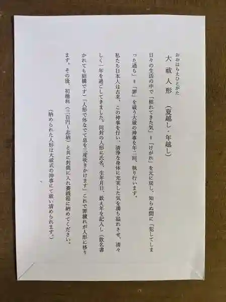 十二月の大祓は年越の祓とも呼ばれ、新たな年を迎えるために心身を清める祓いです。