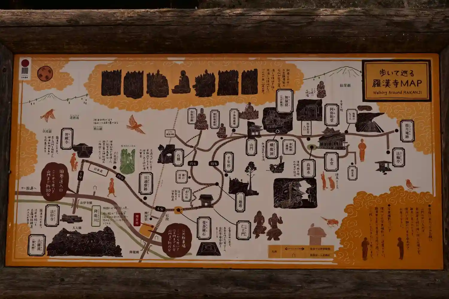 羅漢寺登口に、入山に関しての注意事項があります。登口から5分程登ると仁王門の手前に受付があり入山料志納後、入山許可証を頂きます。リフトもありますが歩いて登りました。登山ではありませんが登山に適した靴が必要です。受付で確認されます。写真撮影は禁止です(羅漢寺を自分自身の五感で感じて心に残していただきたいという思いから)。境内は静かです。石仏がとても多く十分時間をとって参詣されるのがよいと思います。