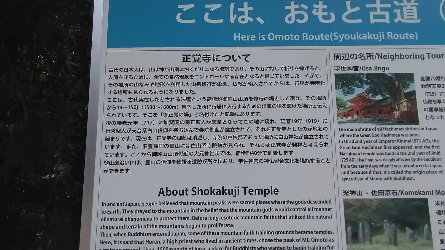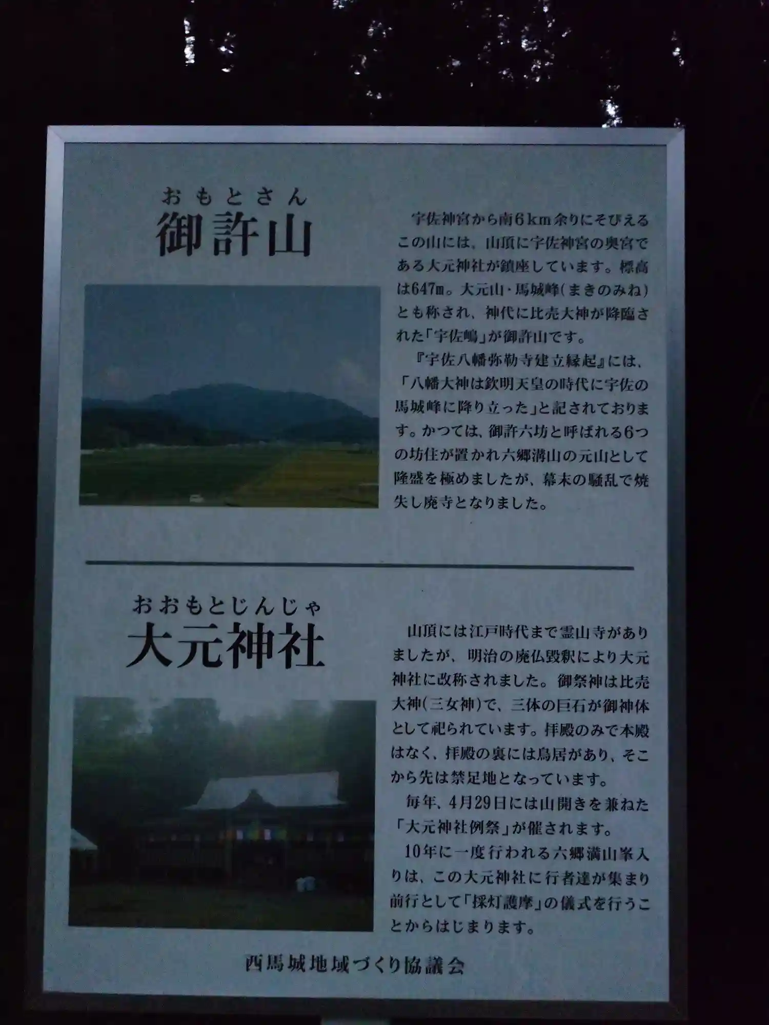 御許山と大元神社の説明です。