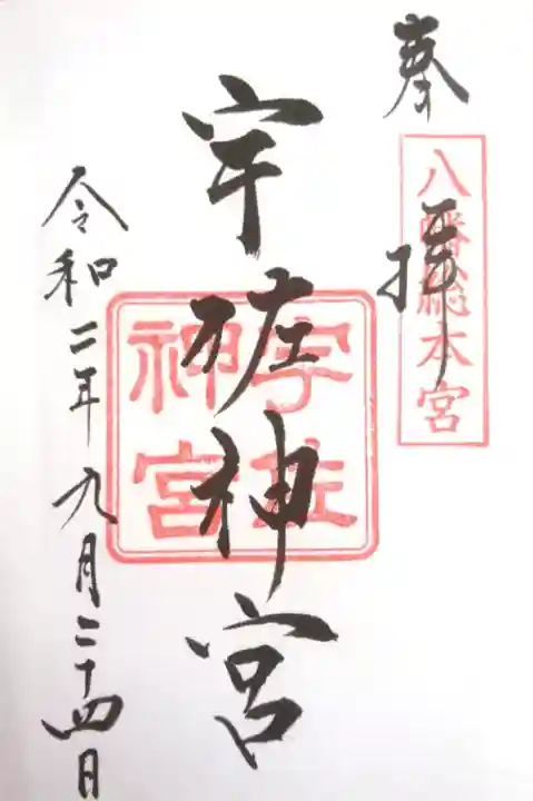 真ん中に宇佐神宮と書かれ、右上に八幡総本宮の印、真ん中に宇佐神宮の社印が押されています。