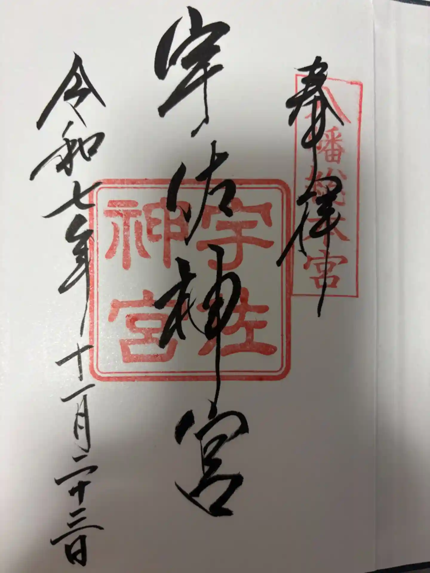 | 御朱印 | あり 右上には「奉拝」、真ん中には「宇佐神宮」の印が押されたシンプルなデザインです。 |