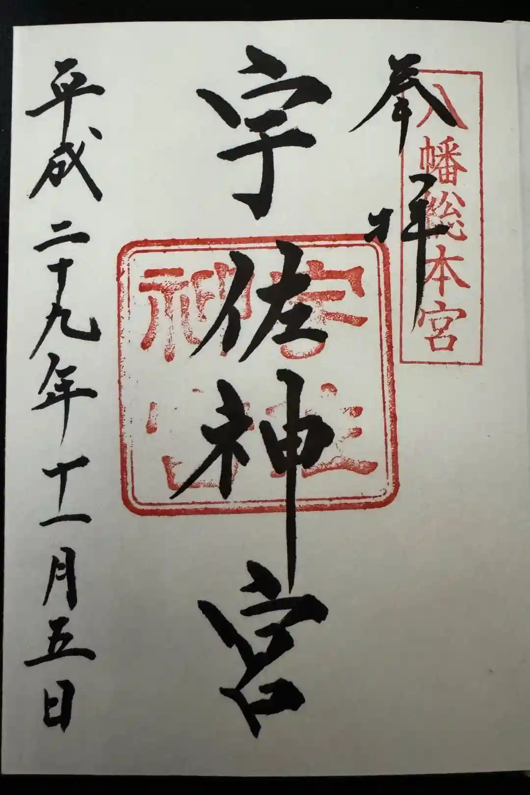真ん中に宇佐神宮と書かれ、右上に八幡総本宮の印、真ん中に宇佐神宮の社印が押されています。