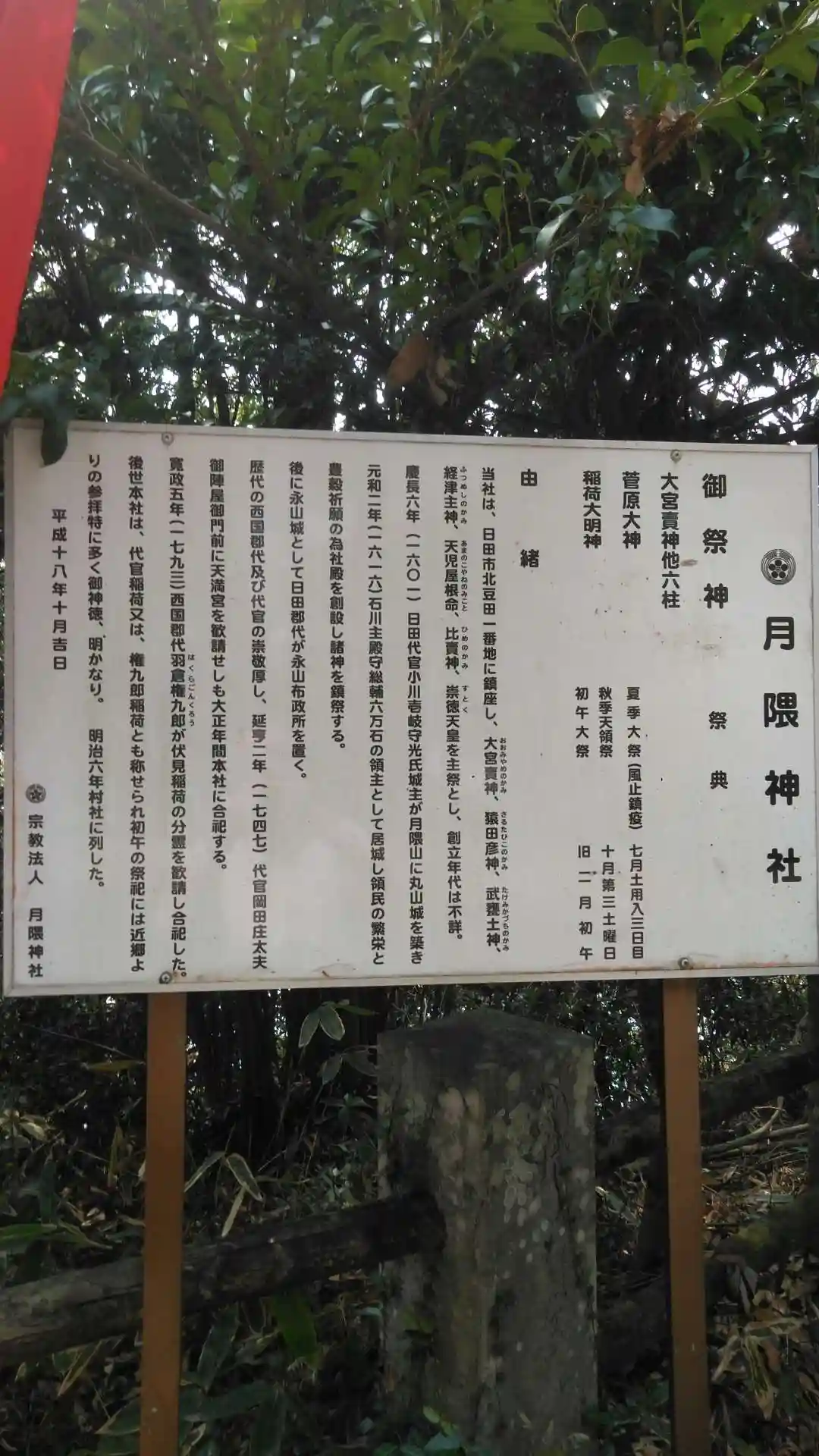由緒には日田市北豆田1番地となっていますが、実際には、月隈公園内にあります