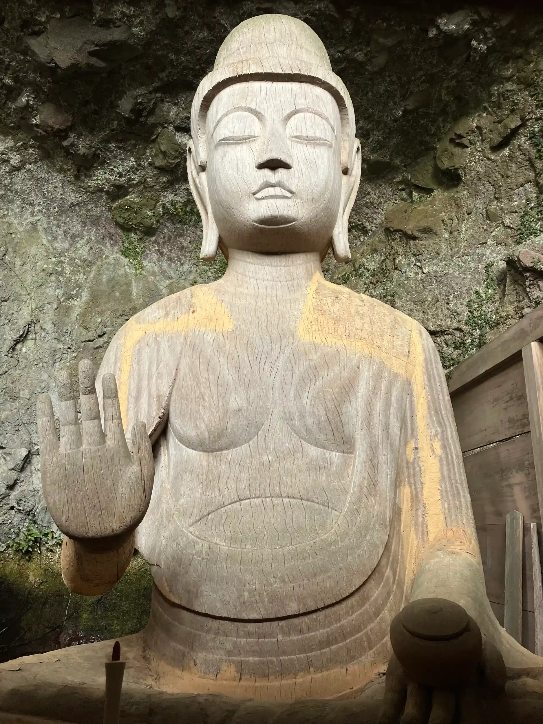 寺院は天正年間(1573年 ~1592年)キリシタン大名・大友宗麟による焼討ちで焼失したが、奥の院と本尊の三尊は難を逃れ現在に伝わっている。