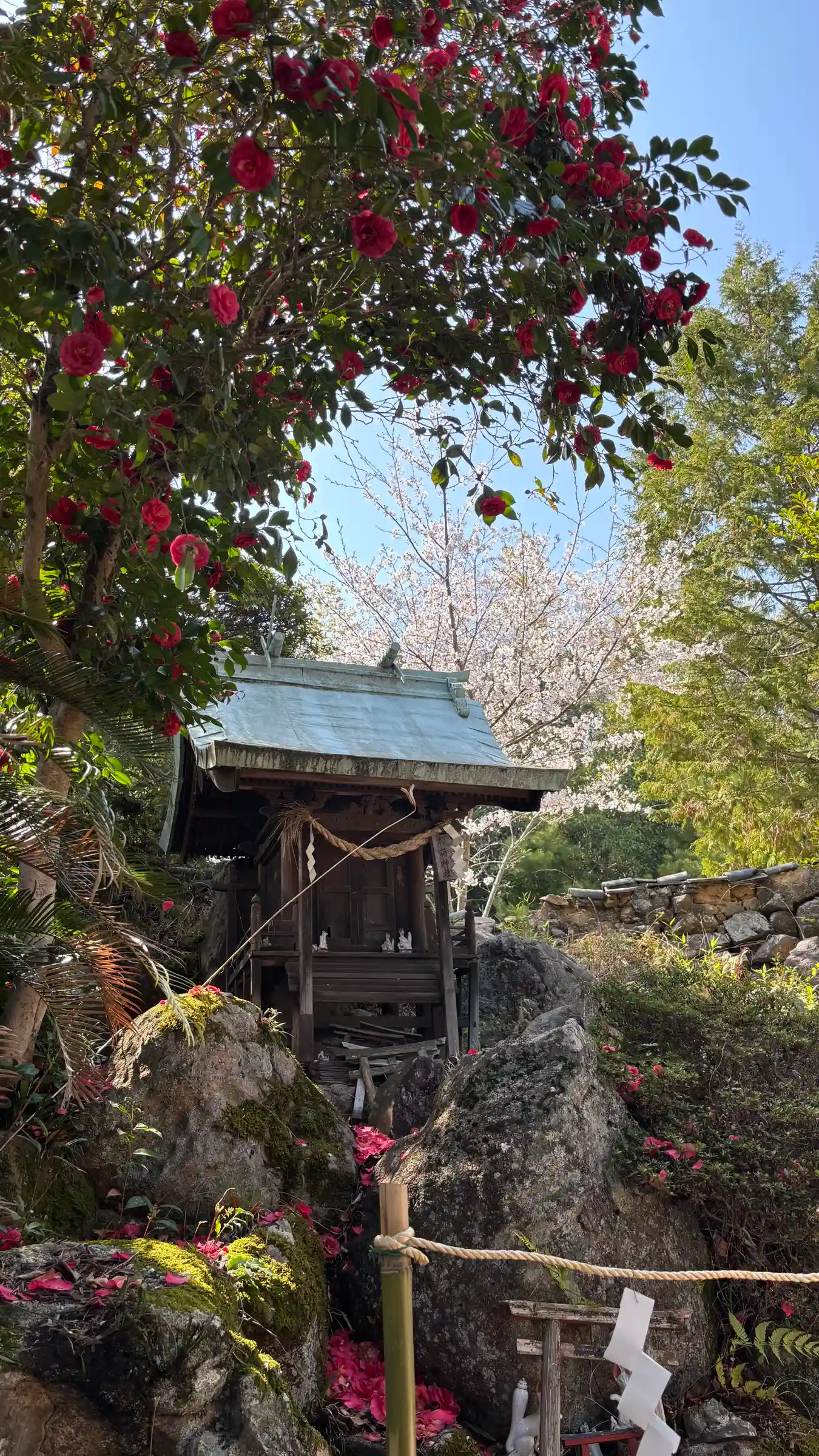 この美しい小さな世界に埋没して、心が喜びの中で震えながら手を合わせました。その度に風が優しく吹いて絵馬をカタカタと揺らしてくれて、その優しい御神気にまた涙がこぼれてくる時間でした。あまりの美しさに去り難くて、境内の周りを4周ほどしたでしょうか、1時間半が経っていました。
