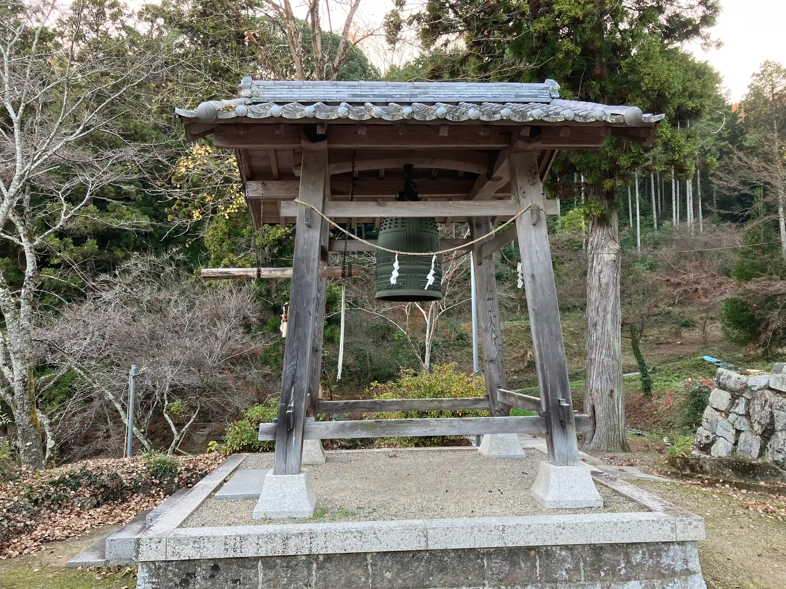 境内に神仏習合の名残の鐘楼がある。かつては神宮寺があったという。