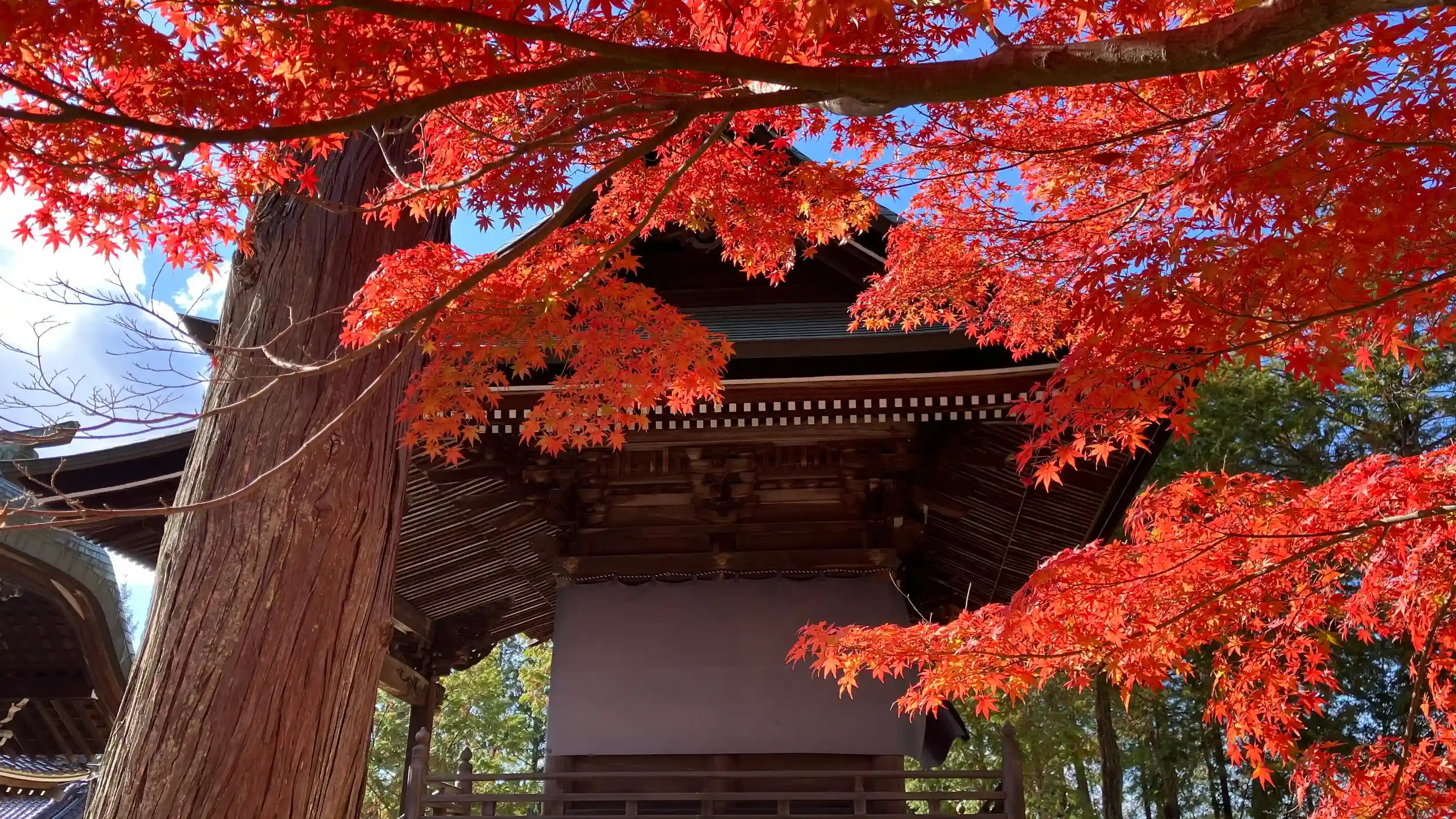 紅葉の龍泉寺です。夏の緑もみじも清涼感があって綺麗ですが、やはり11月のお参りは格別です。龍泉寺の近くの山々は紅葉が美しく、行きすがらのドライブも楽しめます。