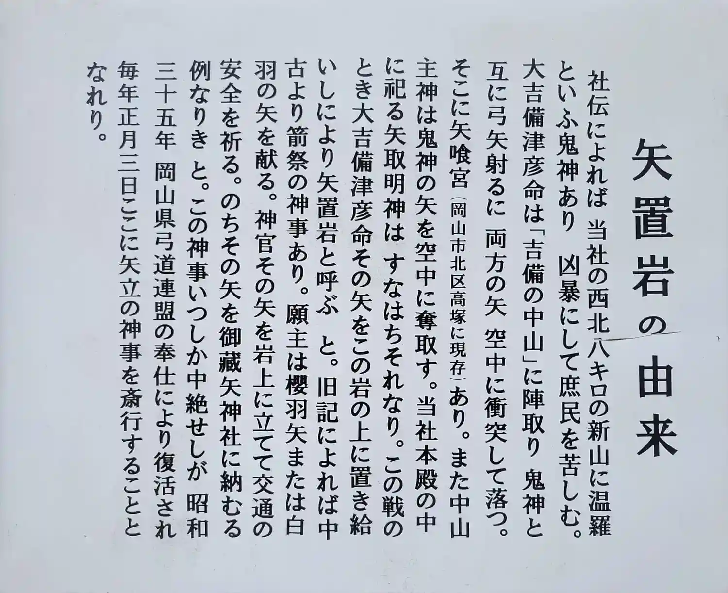 温羅伝説の矢を置いたとされる矢置石。苔むしてます。