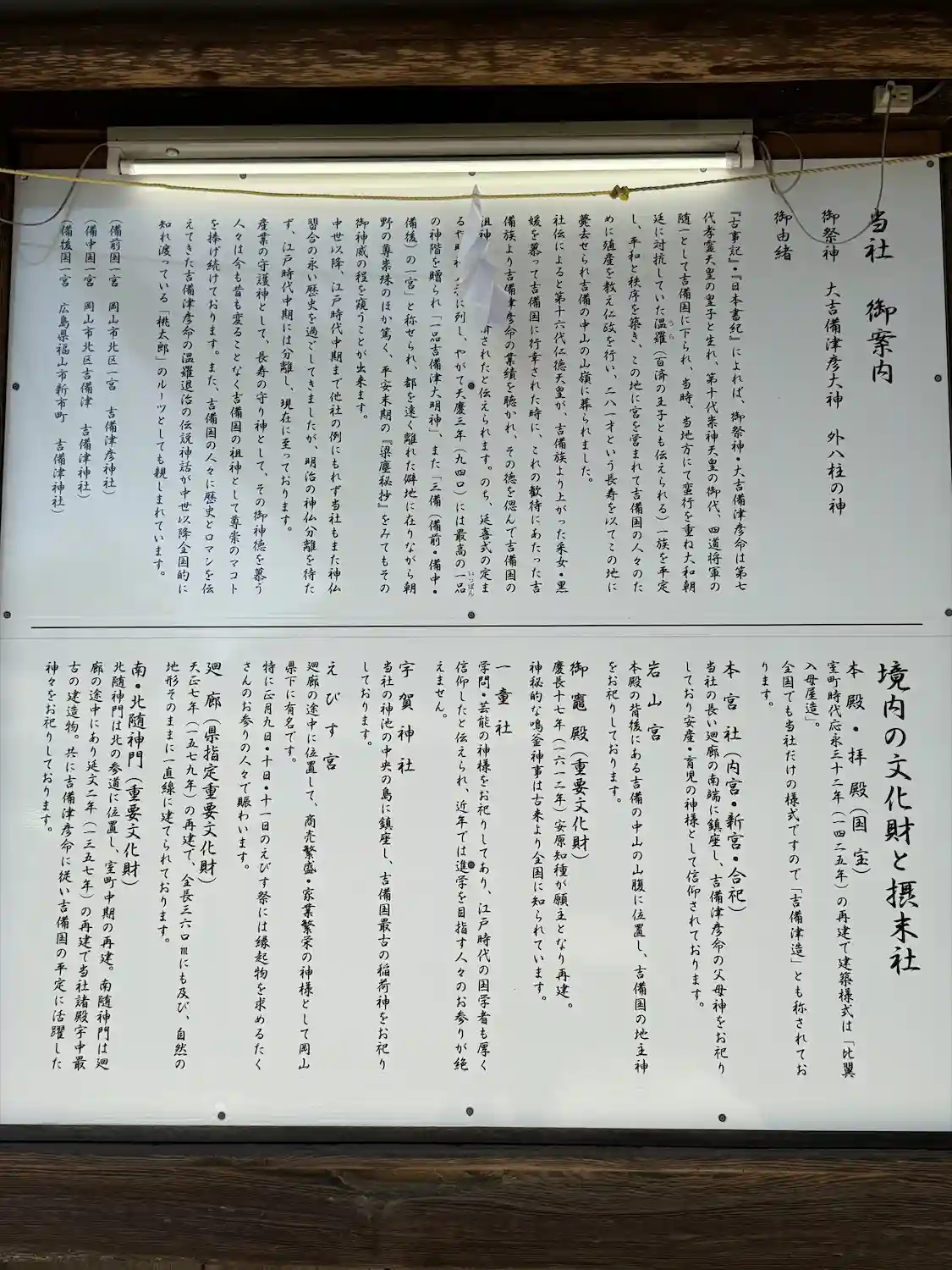境内の摂社末社、文化財の説明書き