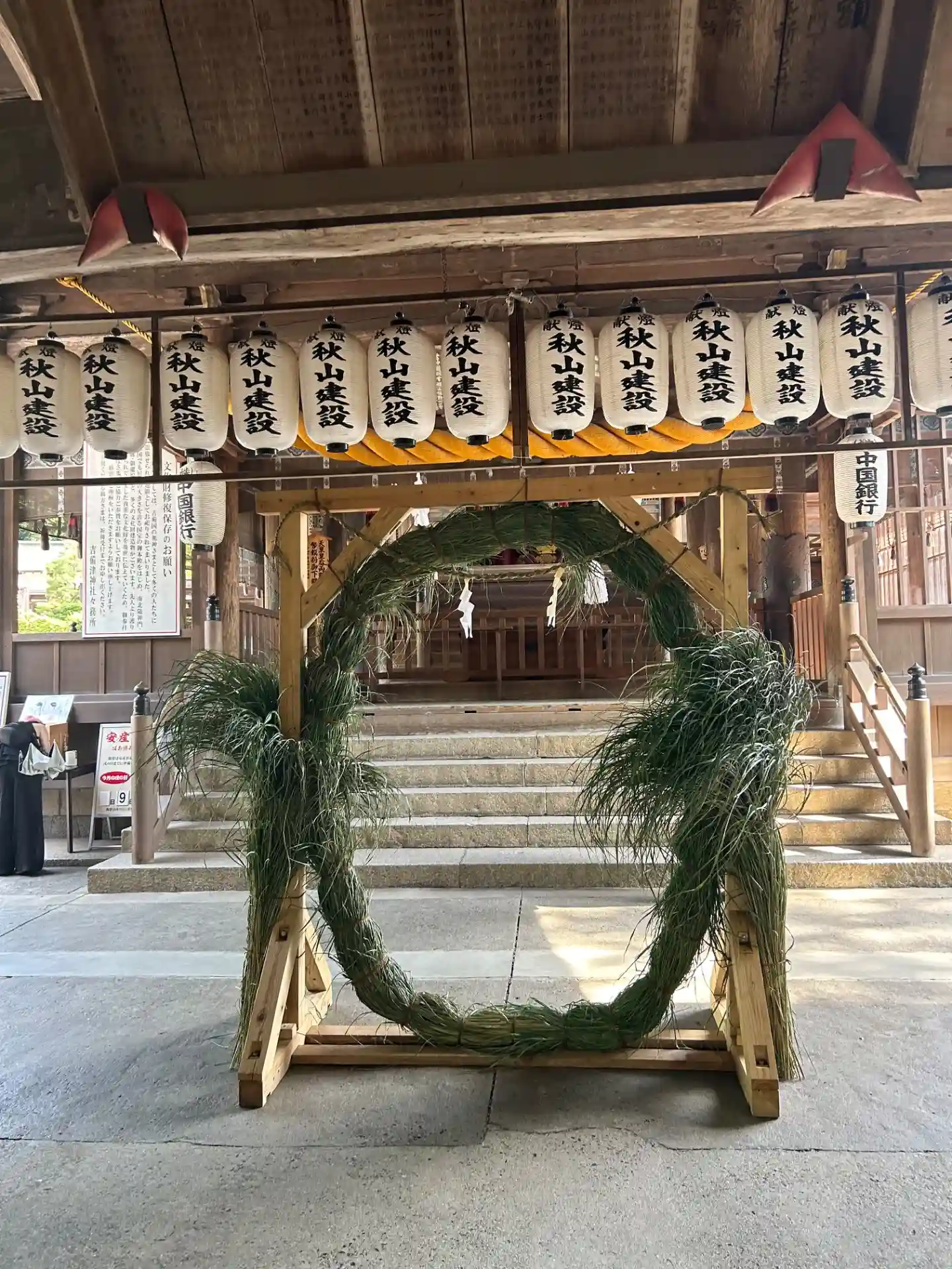 鳥居をくぐり階段を上ると、茅輪…