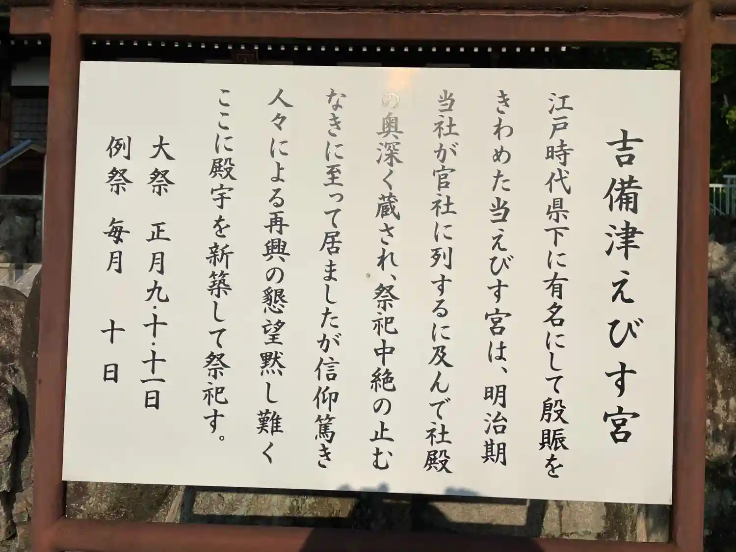 吉備津えびす宮由緒書き