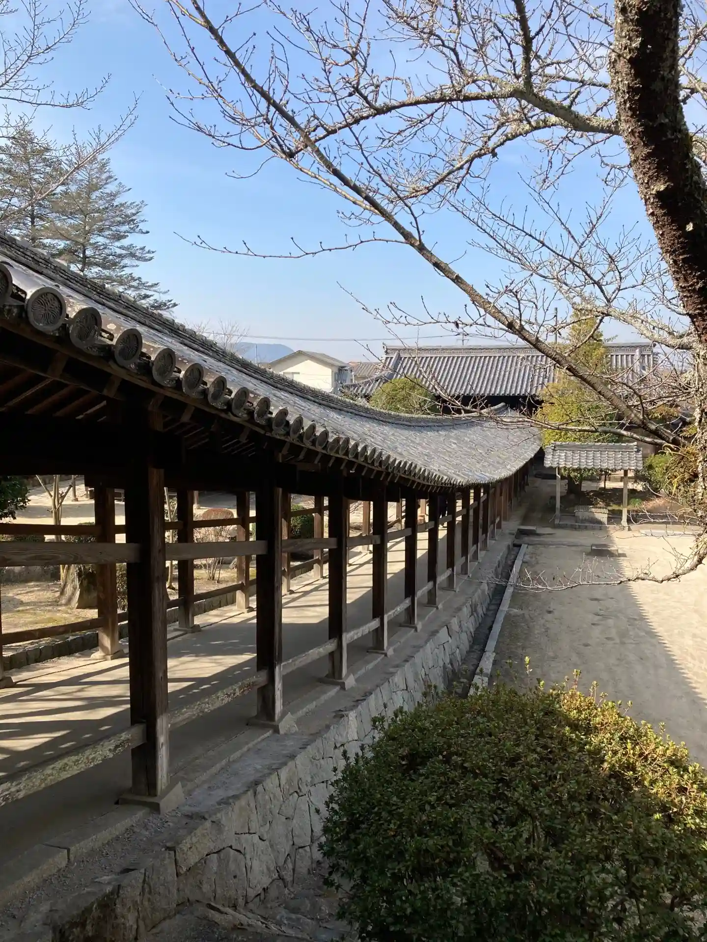 回廊。本殿脇には360mの回廊がのびる。地形に沿ってうねるように建てられていることに感動。