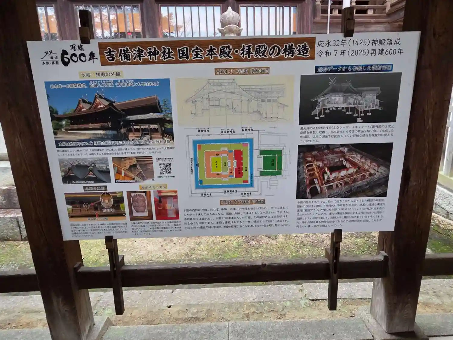 吉備津神社の屋根が二つある感じ(吉備津造)がかっこいいですね。もちろん国宝です。回廊もなかなかよい…