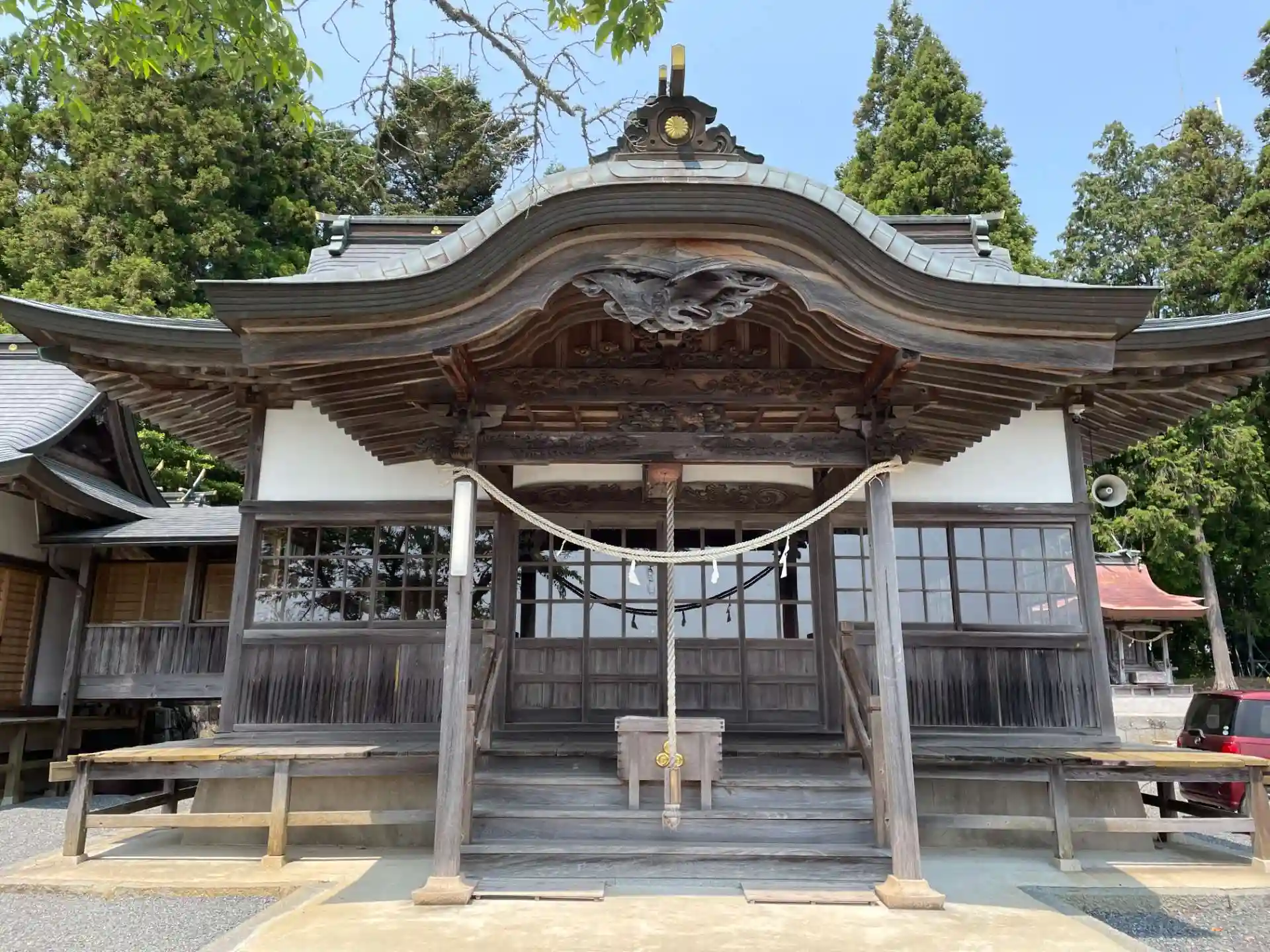 私は駐車場に車を停めたのですが 本殿横にもスペースがあり こちらに停めている方もいらっしゃいました。(大型車は無理)