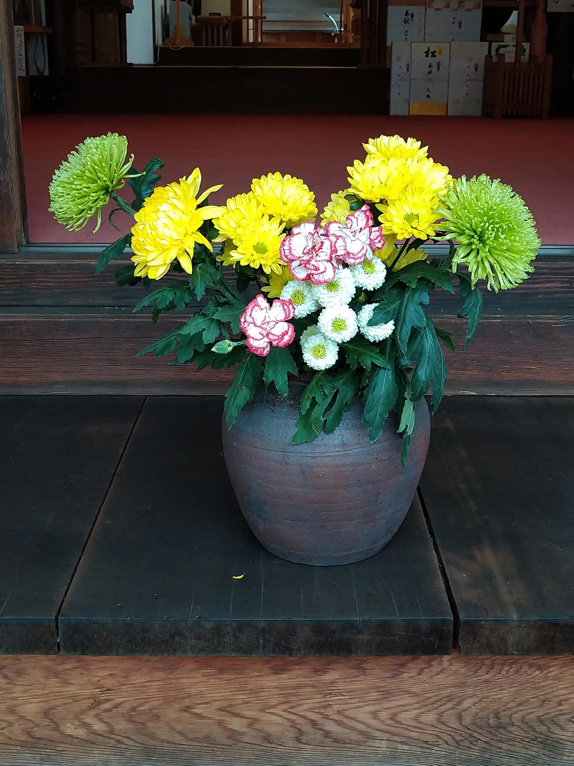 拝殿に飾られてたお花(菊とカーネーション)