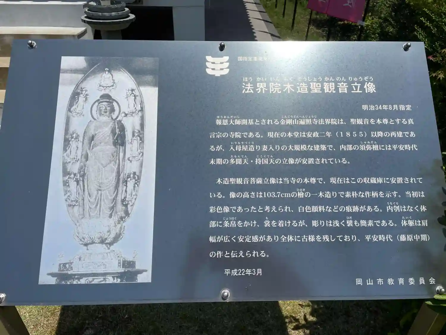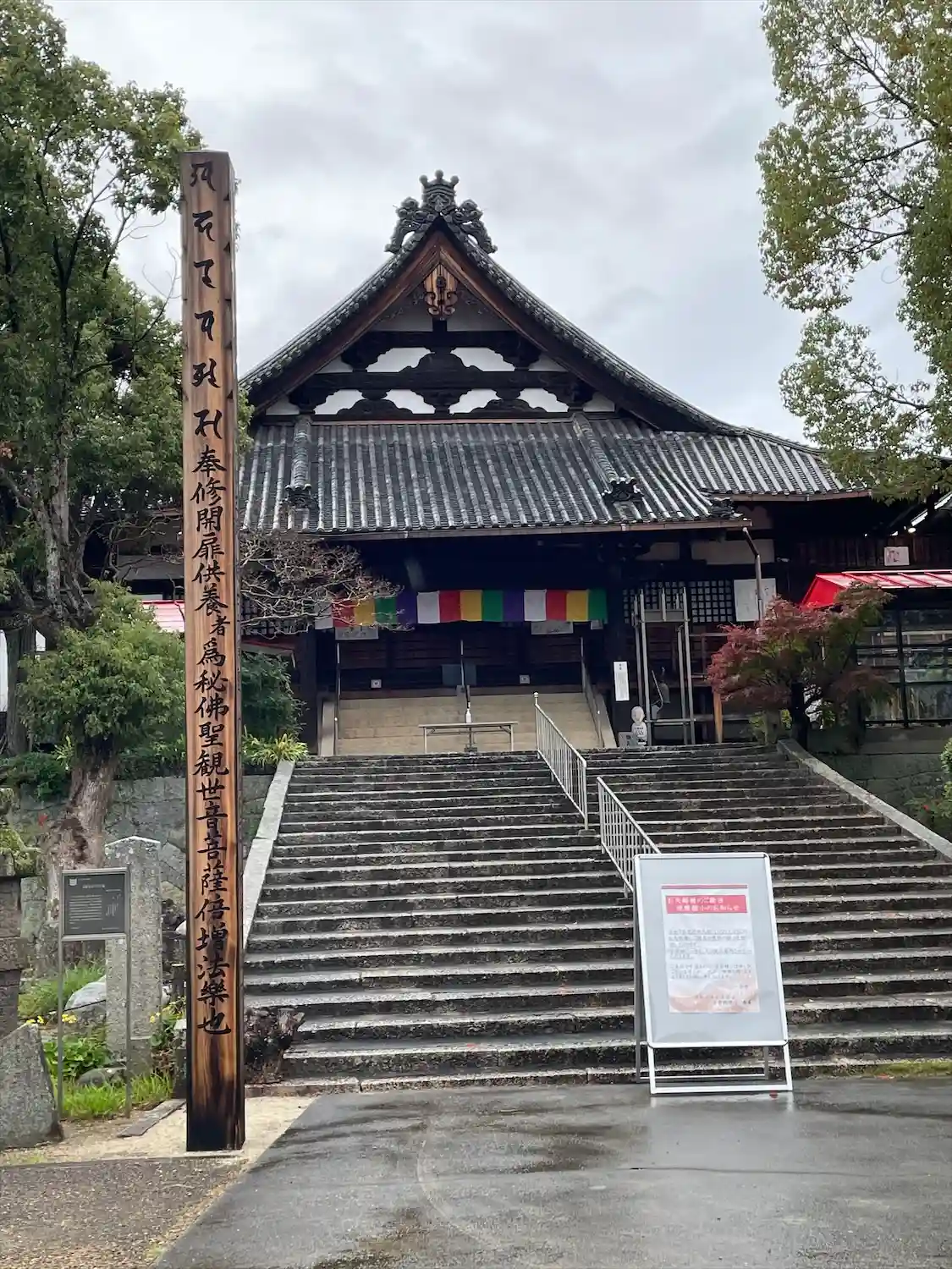 中国観音霊場第5番札所。岡山駅からバスで法界院参道口下車後徒歩2分。バスは土日は本数少ないです。