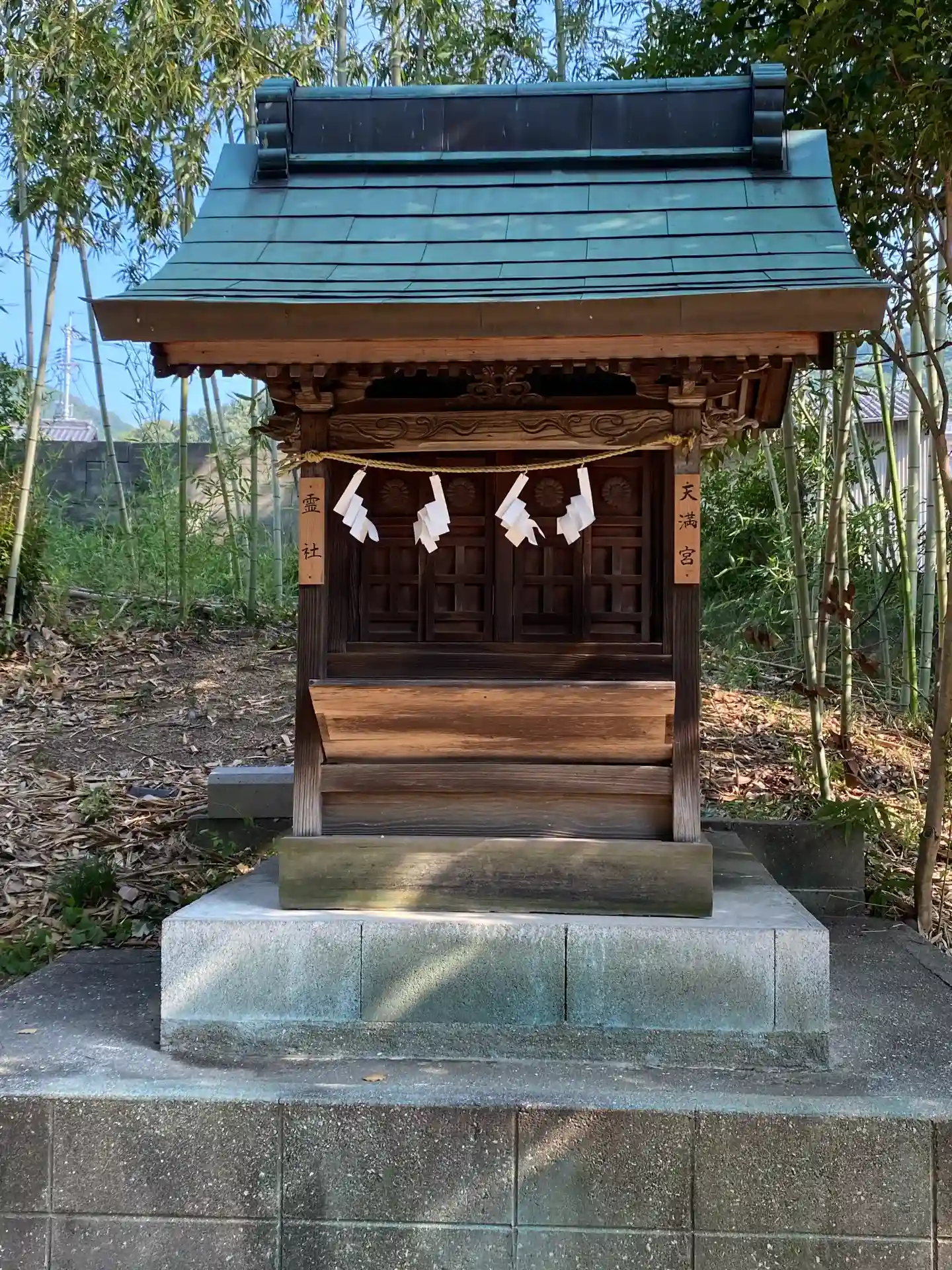 神社の鎮座地についても定かではありませんが、社司は『今ノ社地ヨリ五町バカリ東北、松山ト云ウ所ニ古ノ社地アリ、其後神妙ノ事アリテ、今ノ所ニ遷ス。中頃火災アリテ記録・神宝・皆消失ス。末社ニ松尾御崎ノ社アリ。天神鎮座以前ヨリ地主ノ神ト言ウ。其頃ハ此村ヲ土師村トイウヨシ』という記述を残しています。[当社HPより抜粋]