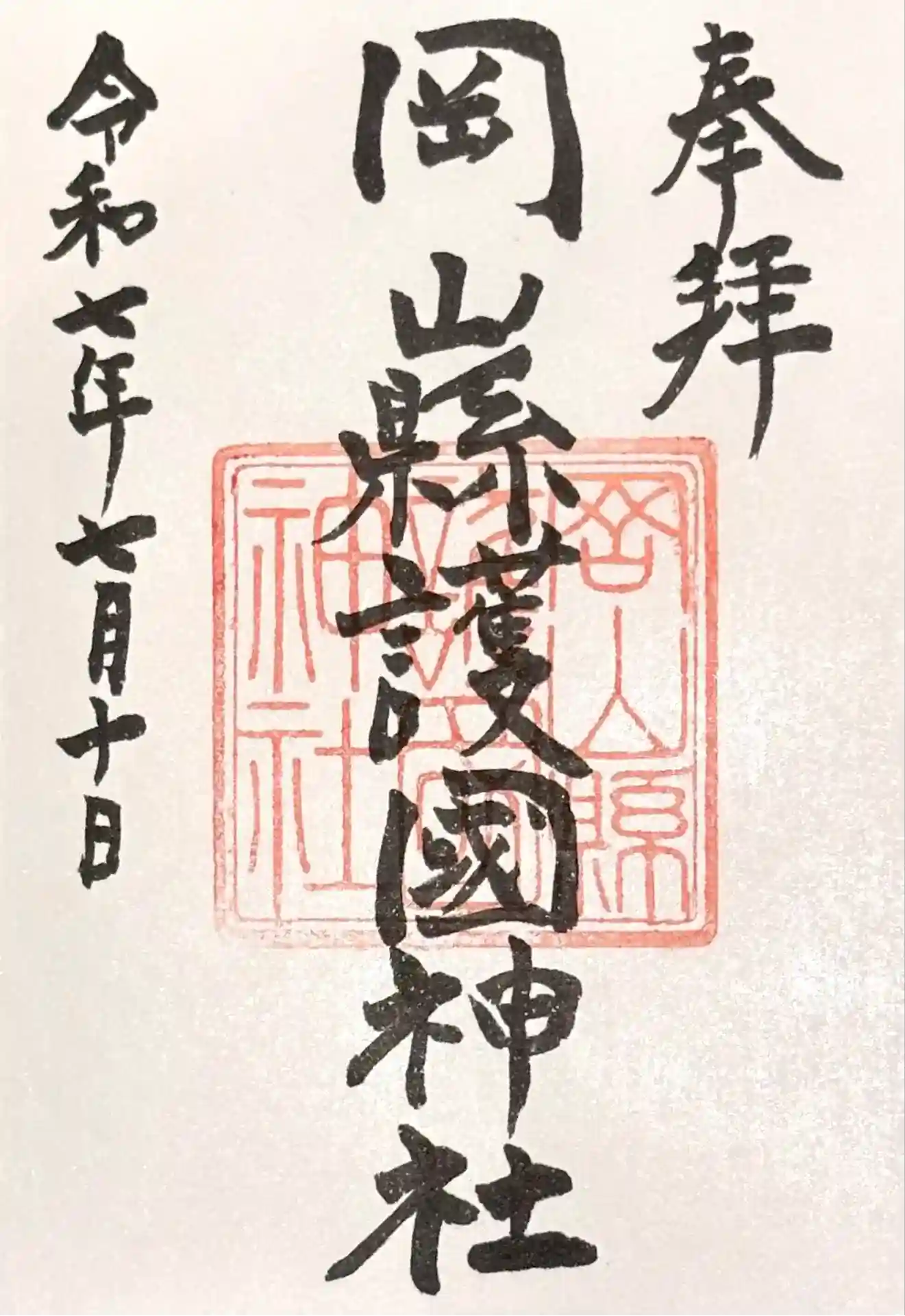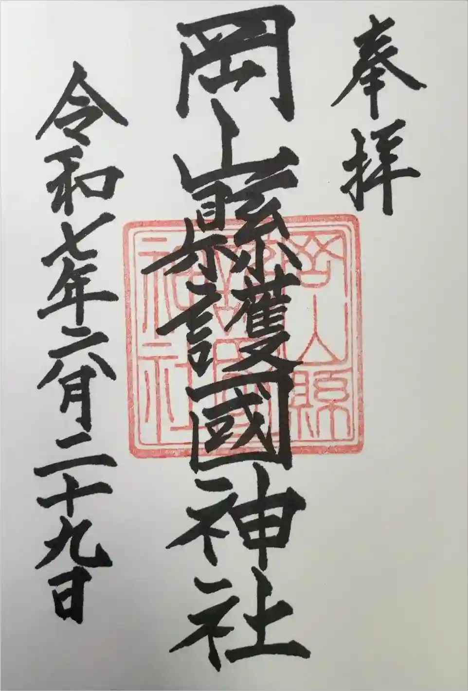 昨日、岡山うかがって頂いた直書きの御朱印になります。