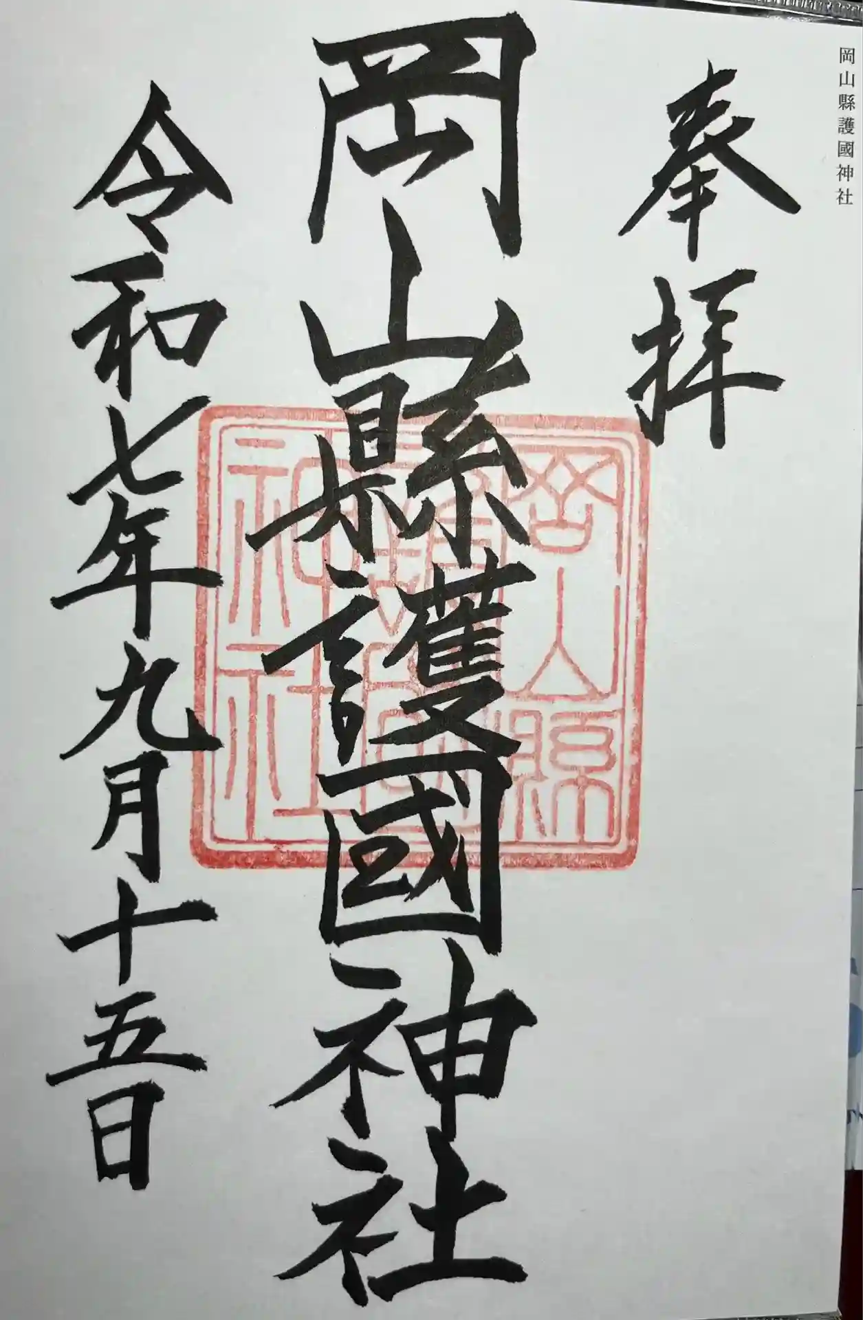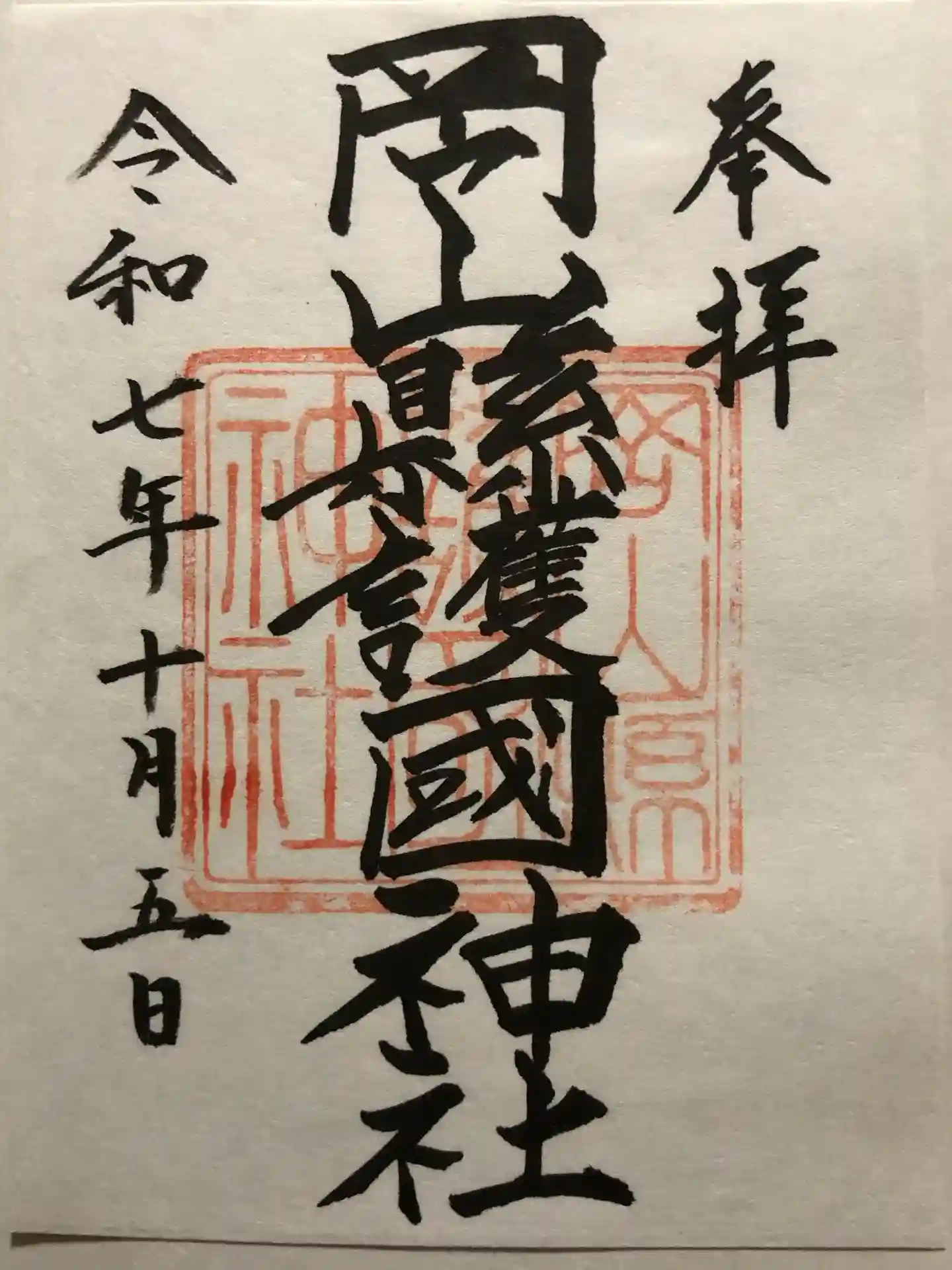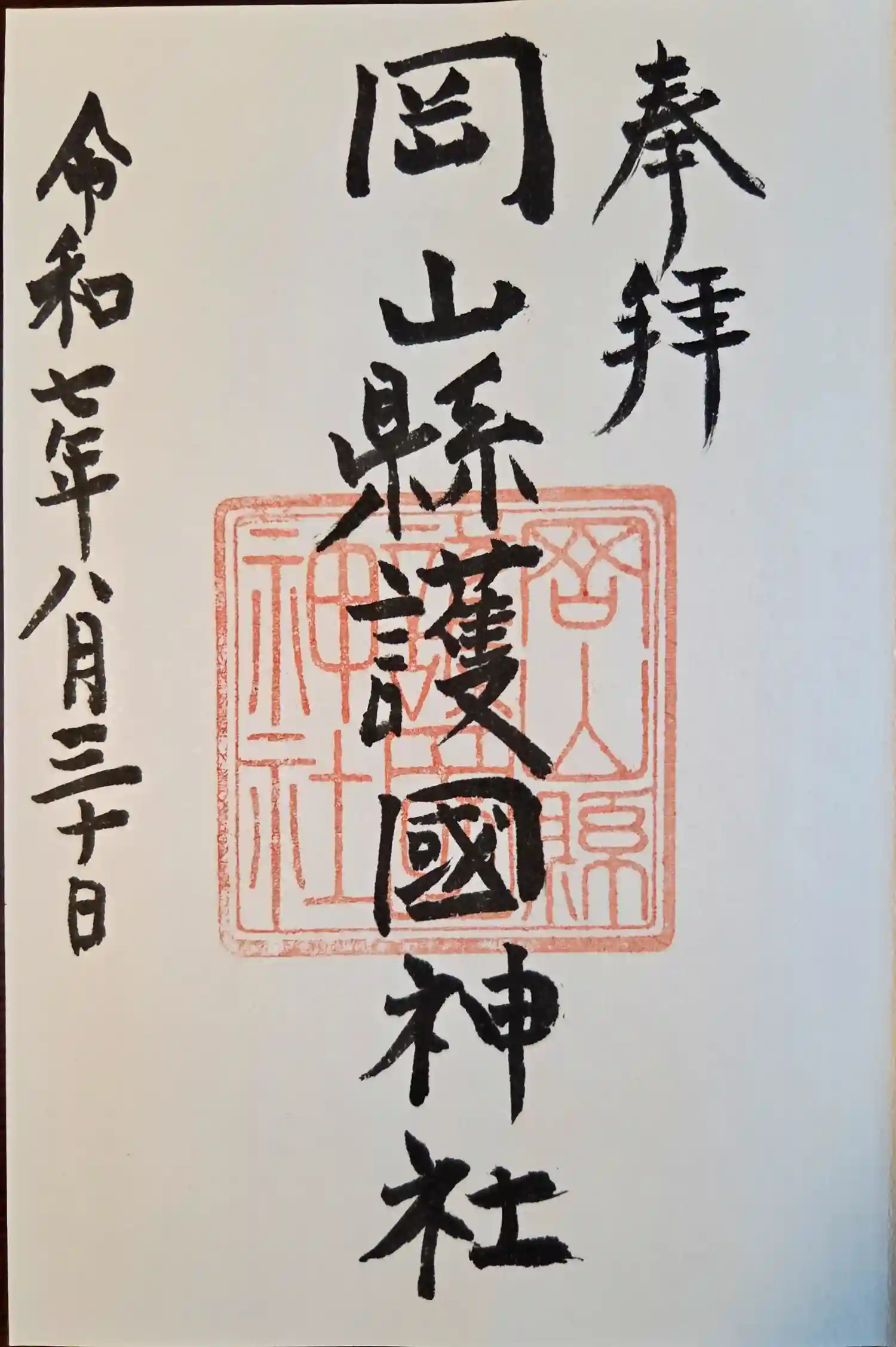 岡山県護国神社の御朱印てす。