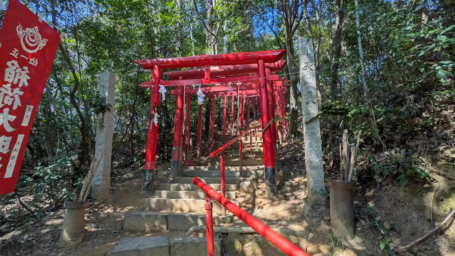 麓から赤い鳥居が出迎えてくれます。