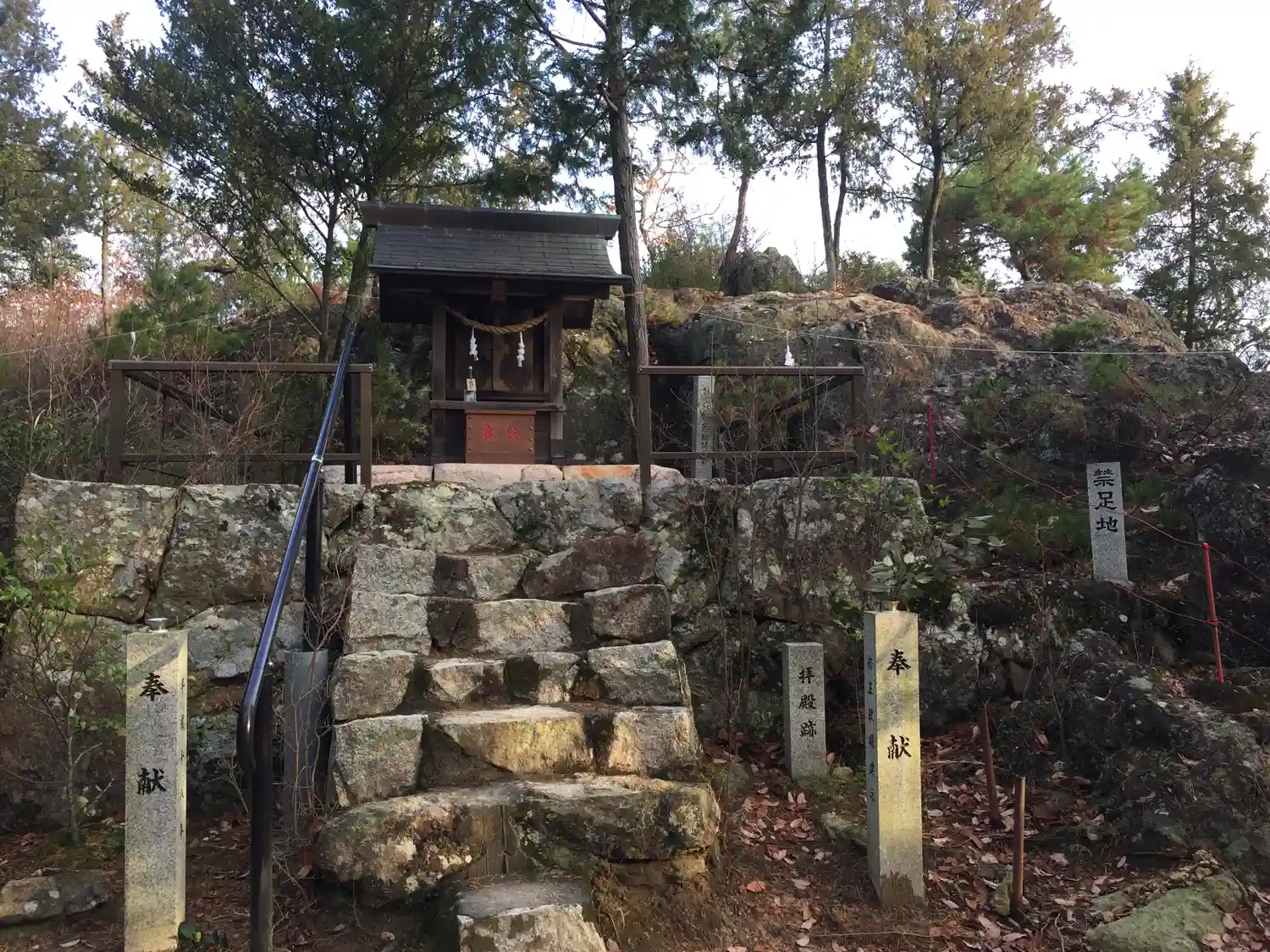 山頂にある本宮と巨石