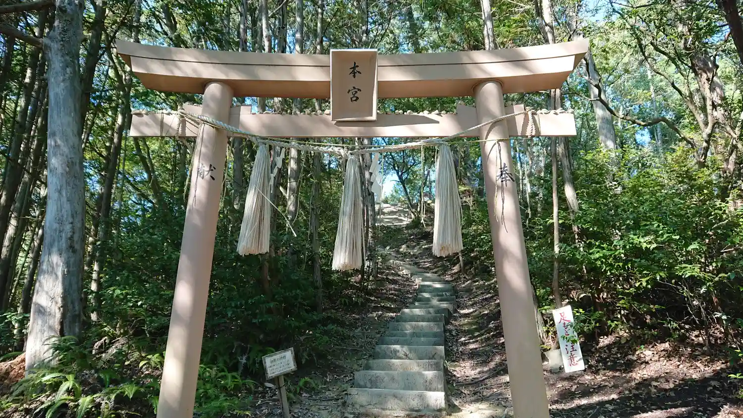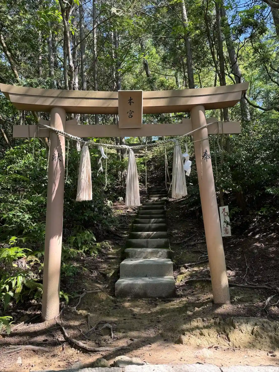 社務所がすでに山の中にあり、そのさらに奥に本宮があるということ…